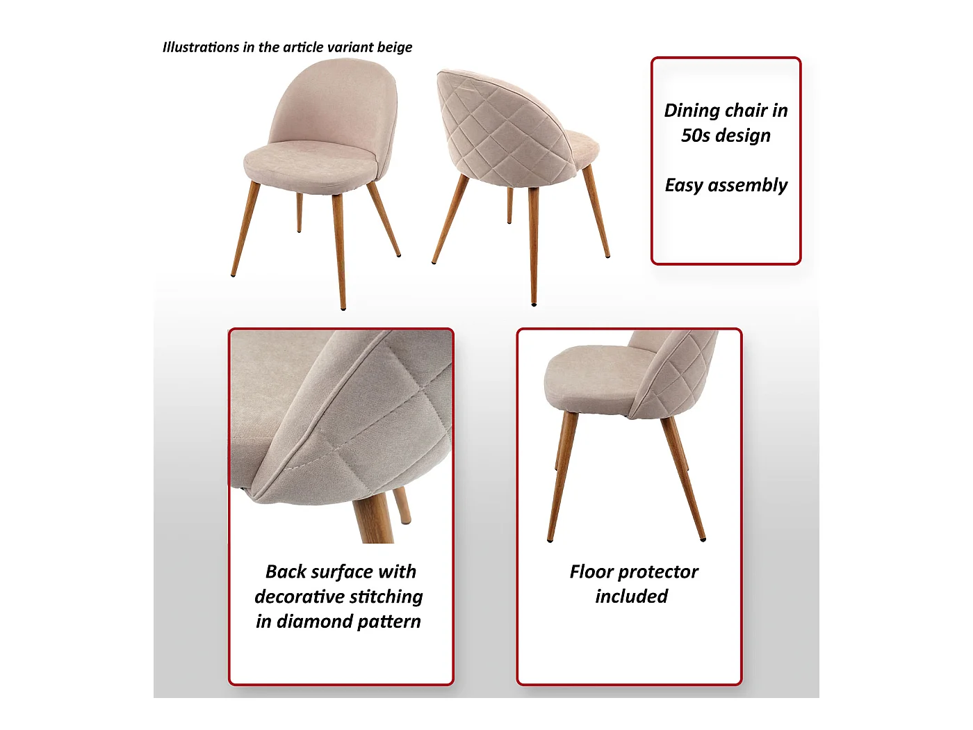 Esszimmerstuhl MCW-D53 (4er-Set), Hellgrau