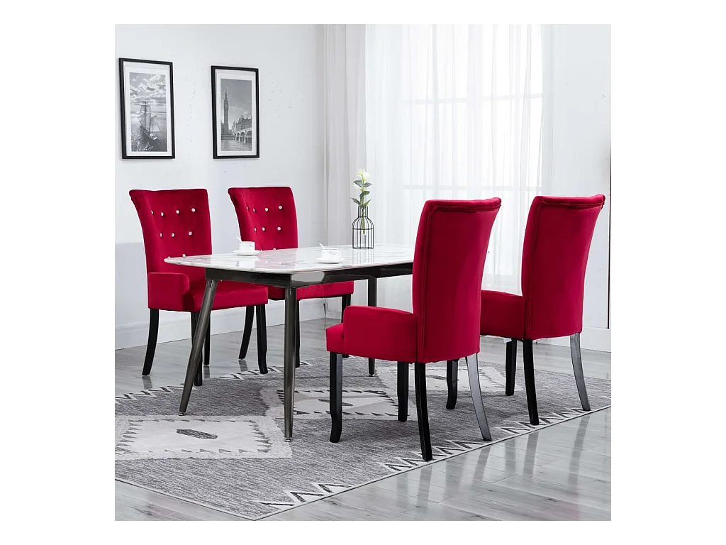 Esszimmerstuhl mit Armlehnen 4 Stk. Rot Samt