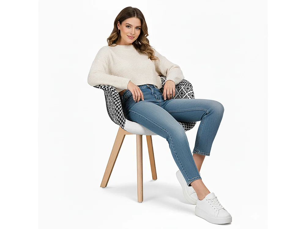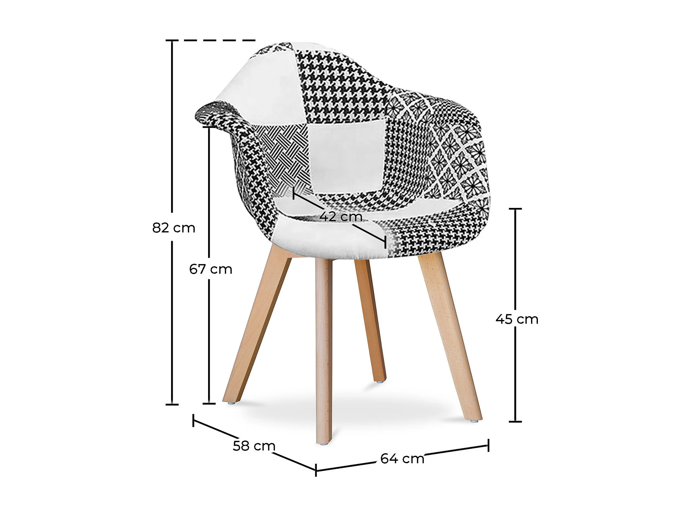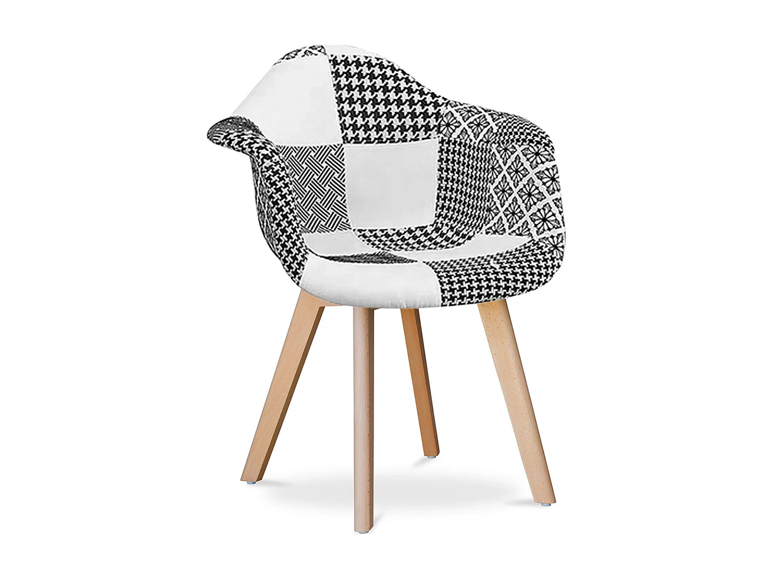 Esszimmerstuhl mit Armlehnen - Bezogen mit Patchwork - Schwarz und Weiß - Dominic