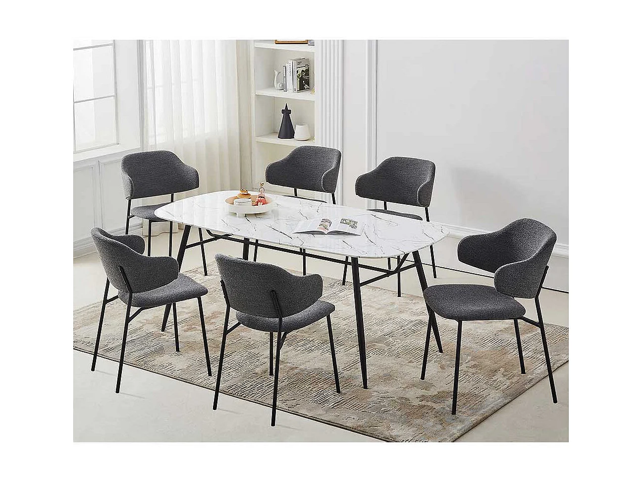 Esszimmerstuhl mit Armlehnen Boucle Stoff (2er Set)