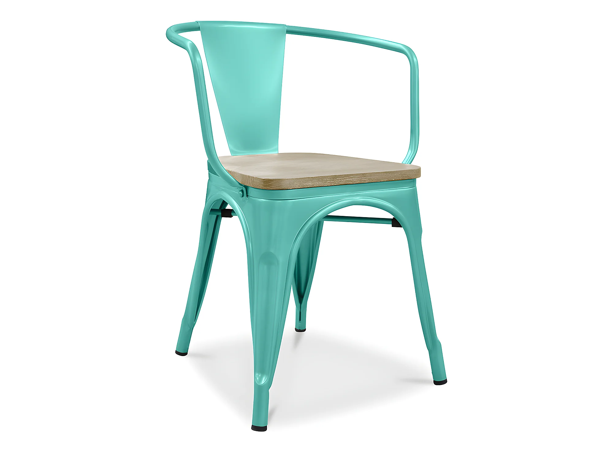 Esszimmerstuhl mit Armlehnen - Industriedesign - Holz und Stahl - Neuauflage - Stylix