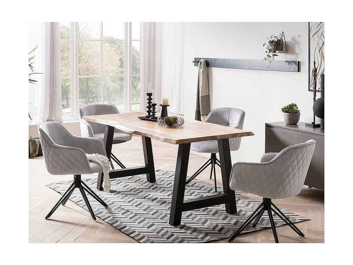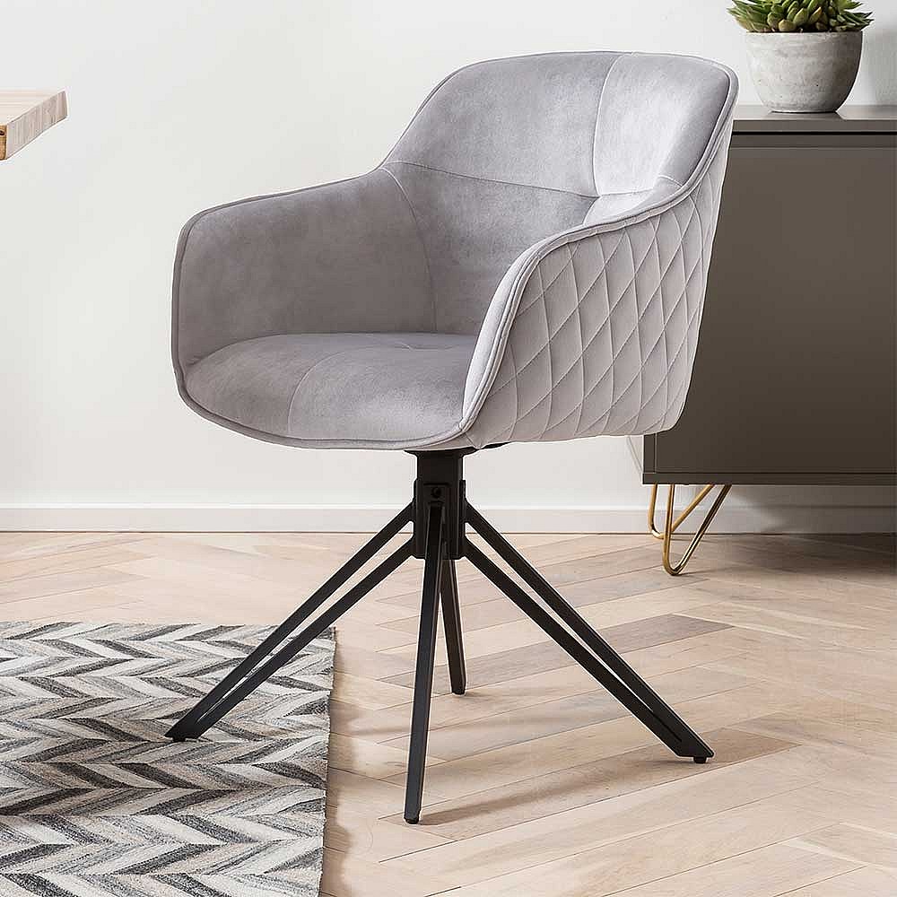 Esszimmerstuhl mit Steppungen in Hellgrau Samt Gestell drehbar