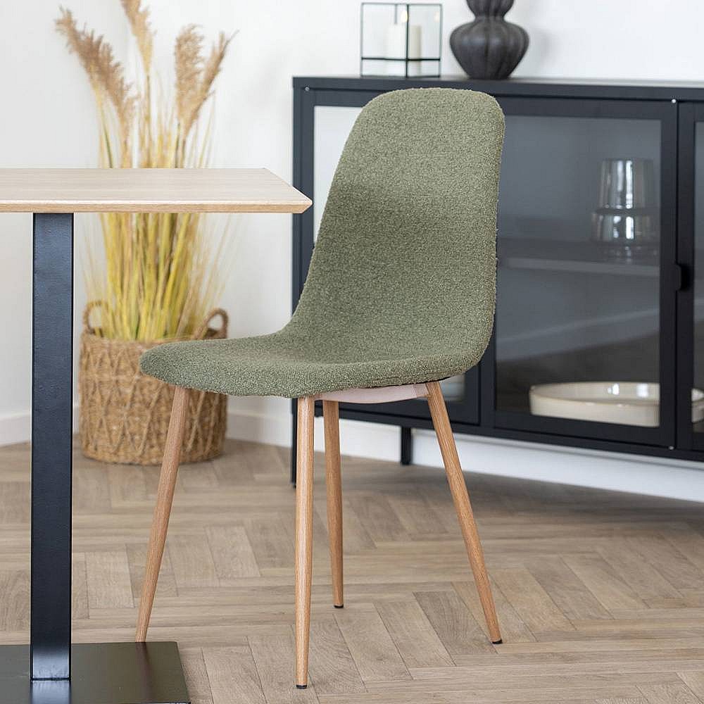 Esszimmerstuhl Polsterstuhl in Dunkelgrün aus Boucle Stoff (2er Set)