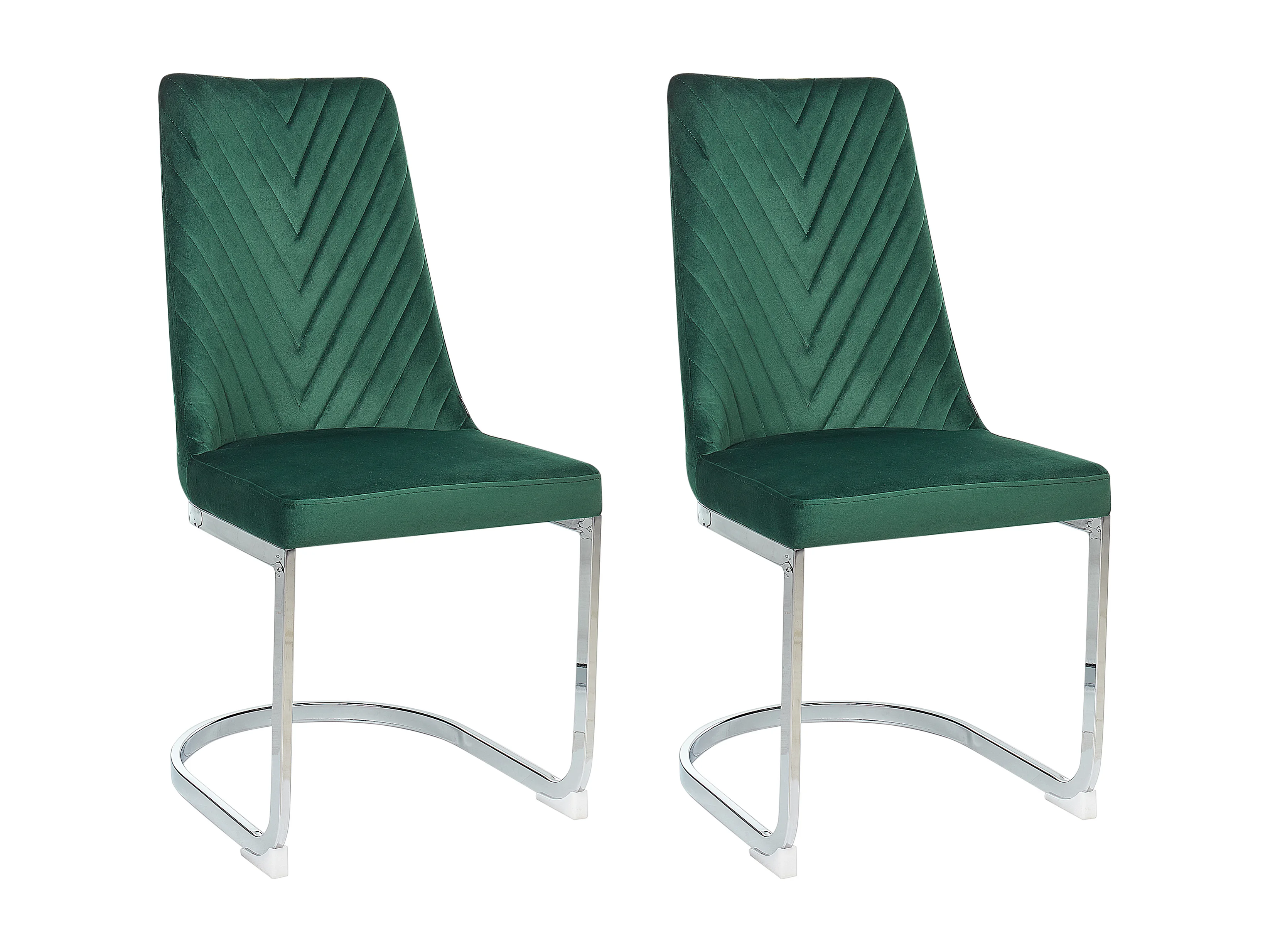 Moderner Freischwinger Stuhl 2er Set Dunkelgrün Samtstoff Metallgestell Altoona