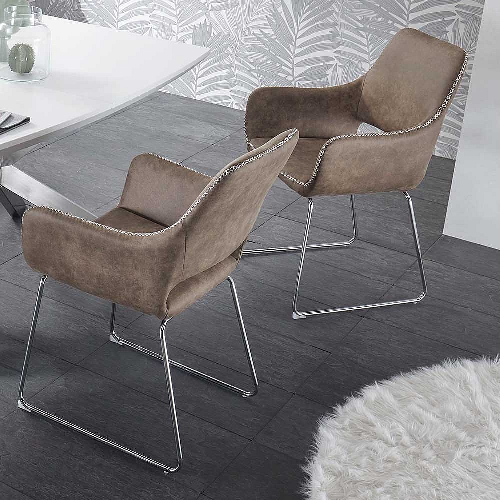 Esszimmerstuhl Set in Braun Microfaser Armlehnen (2er Set)