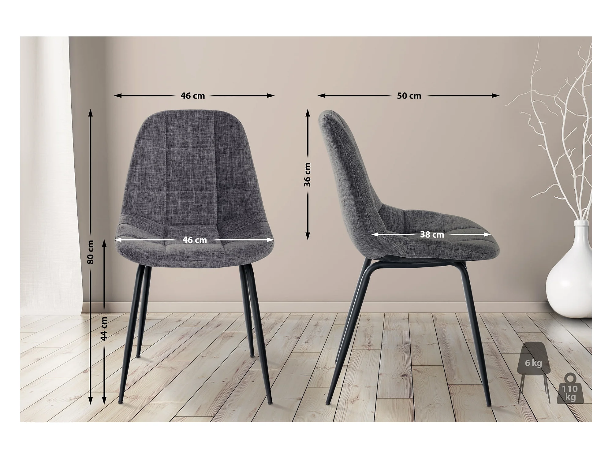 Esszimmerstuhl - Stoff & Metall matt schwarz - hellgrau - Tom