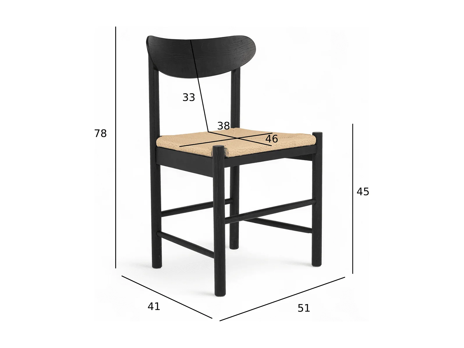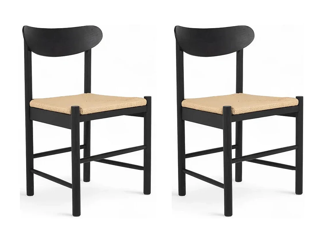 Esszimmerstühle 2er Set Malou - Papiergarn & Massives Eichenholz - Schwarz