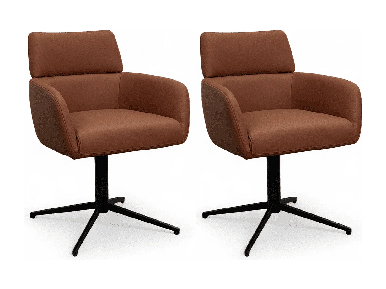 Esszimmerstühle 2er Set Marco - Leder & Metall - Dunkelbraun