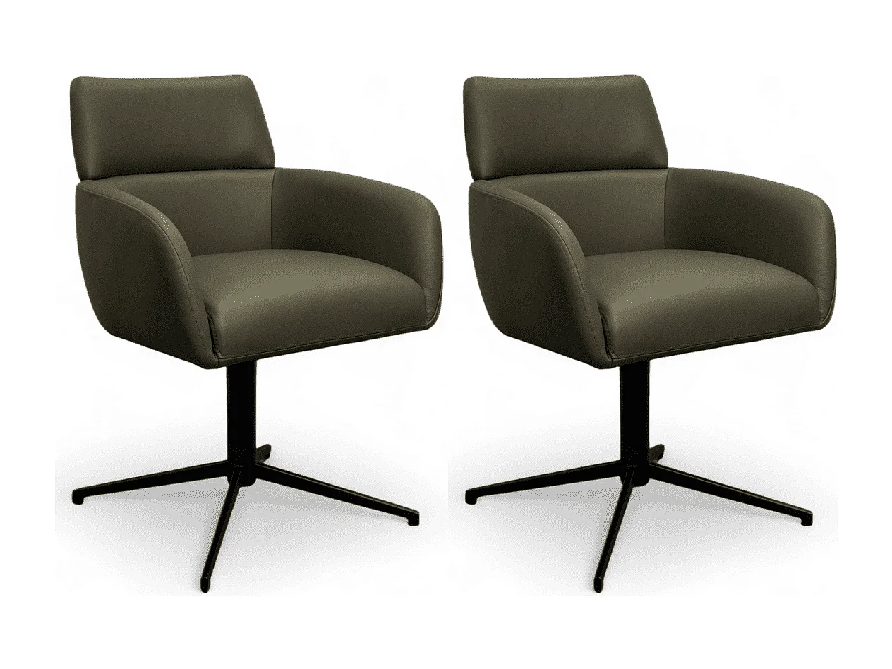 Esszimmerstühle 2er Set Marco - Leder & Metall - Olivgrün