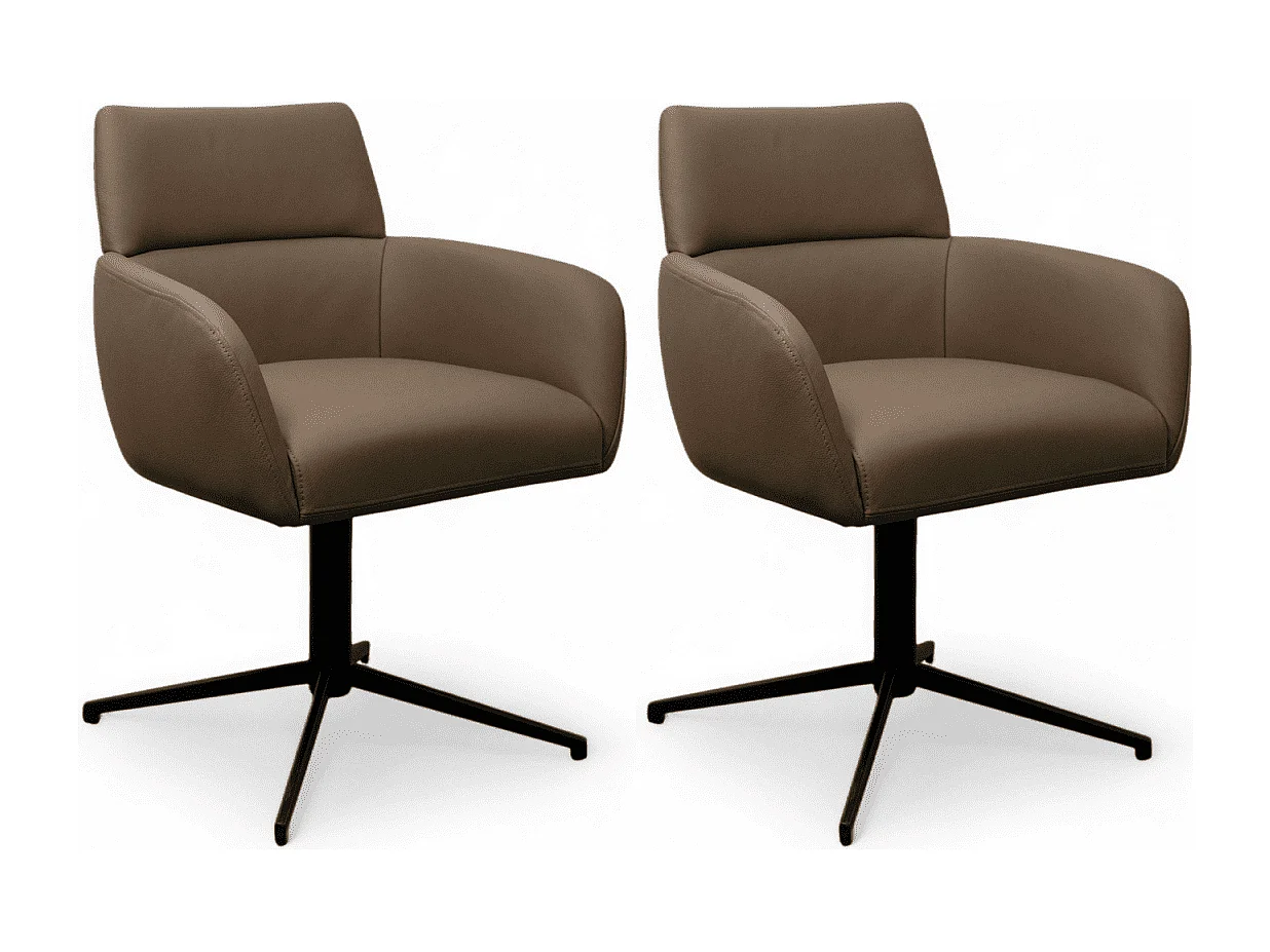 Esszimmerstühle 2er Set Marco - Leder & Metall - Taupe