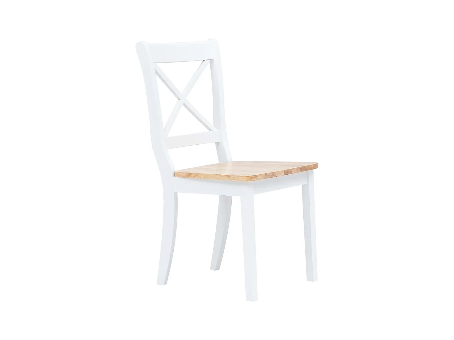 Esszimmerstühle 2er-Set weiß und helles Holz massives Gummibaumholz