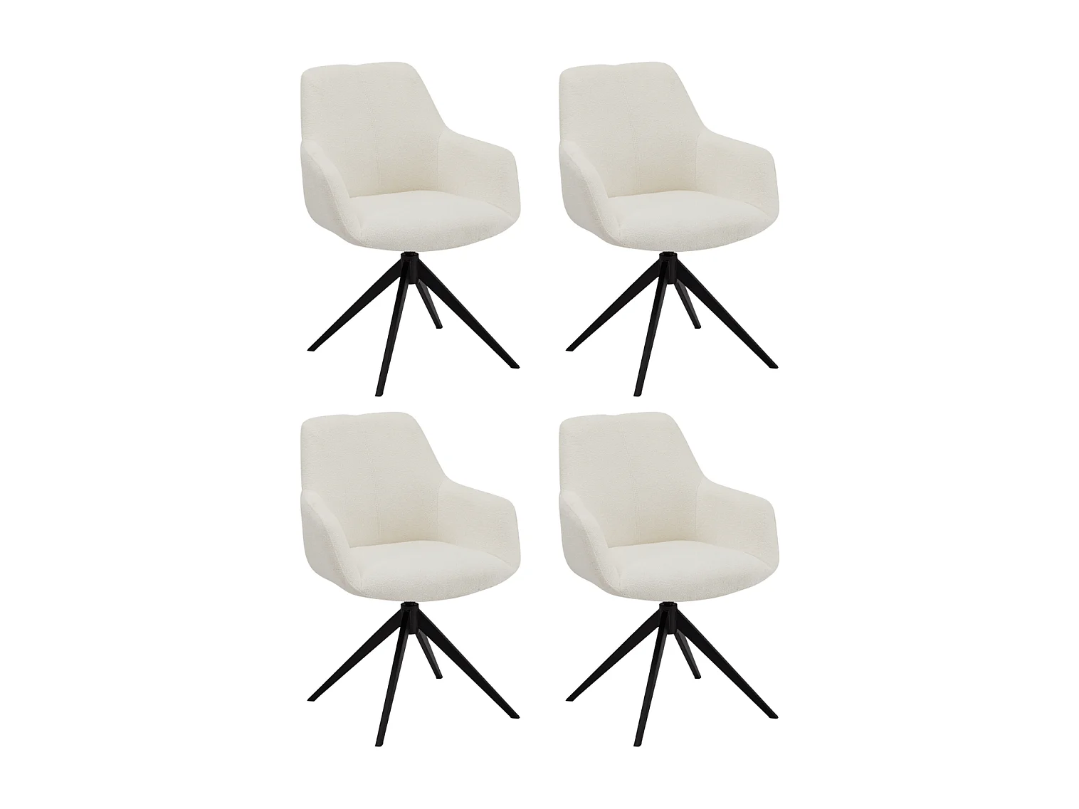 Esszimmerstühle 4er Set Helena - Stoff (Bouclé) & Metall - Cremeweiß