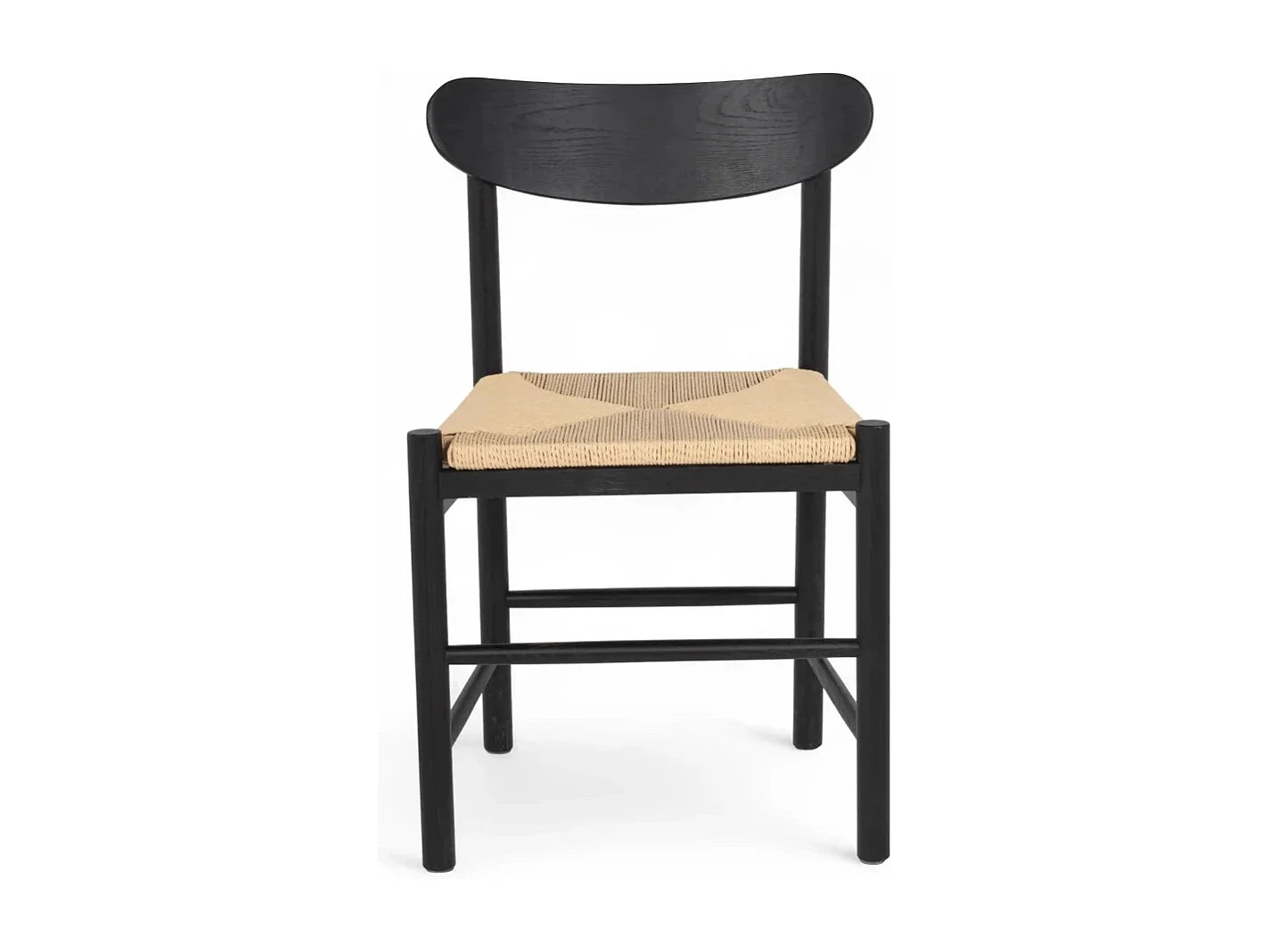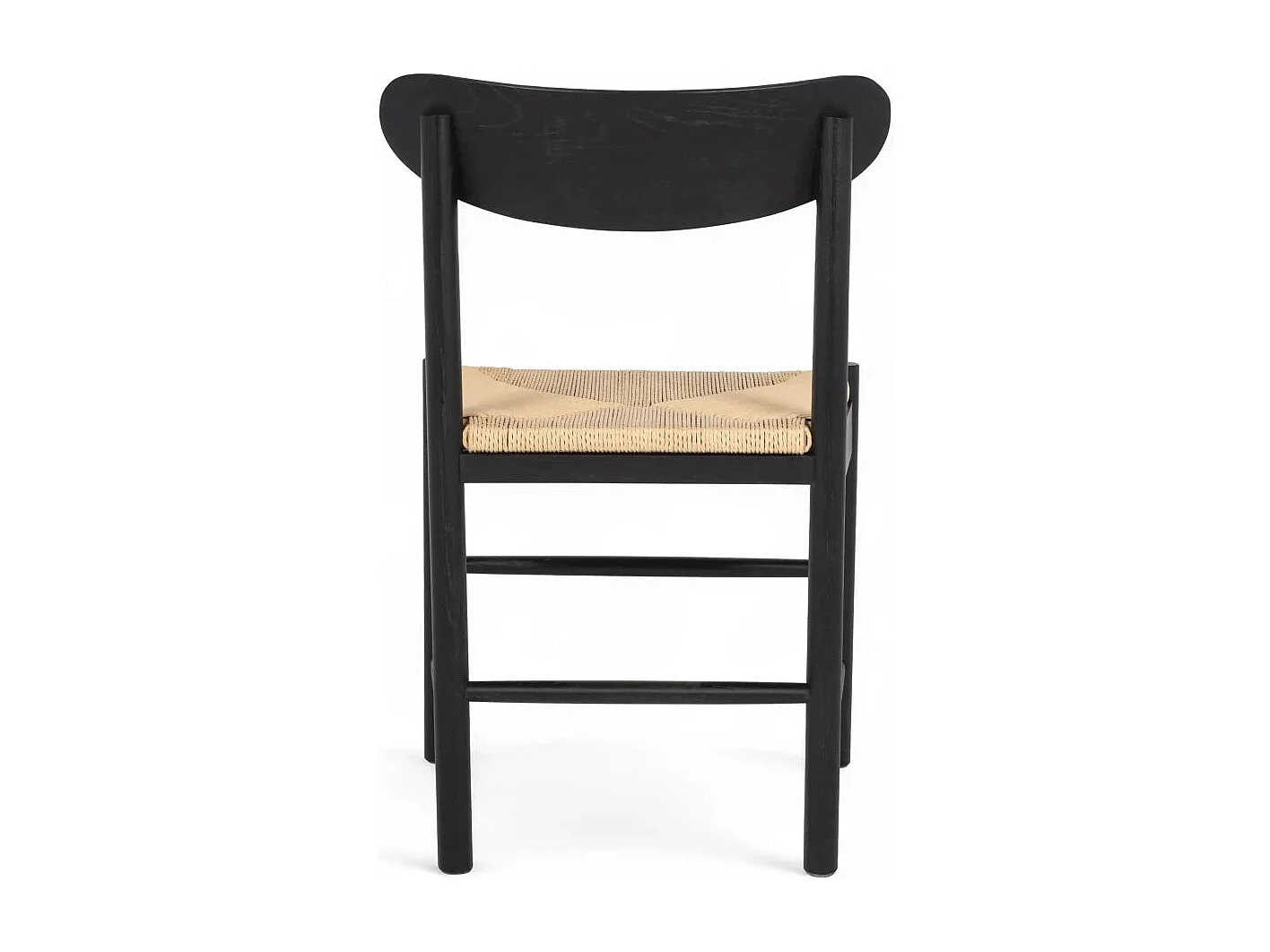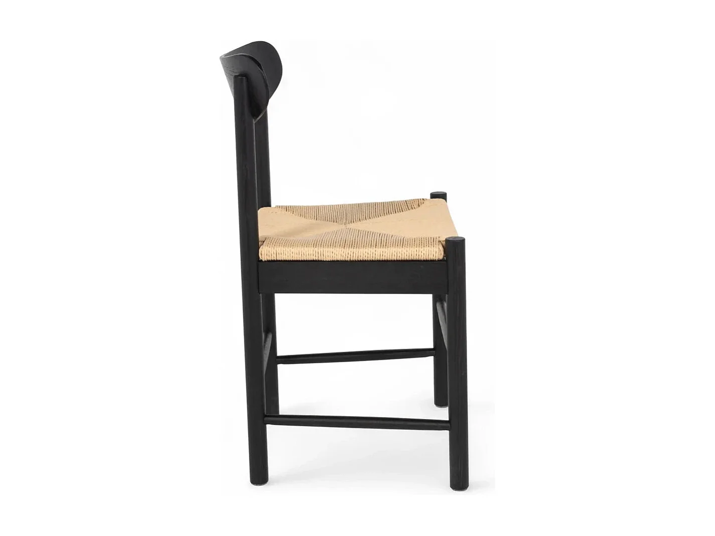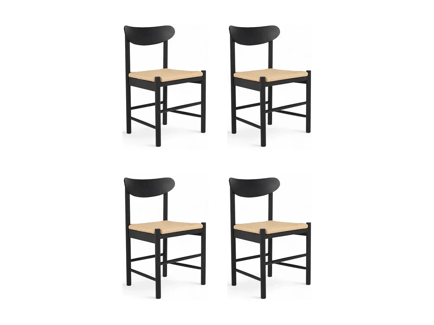 Esszimmerstühle 4er Set Malou - Papiergarn & Massives Eichenholz - Schwarz
