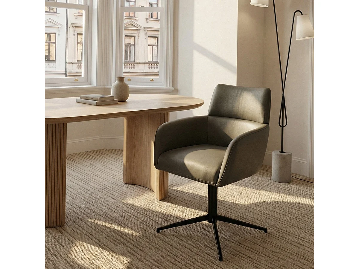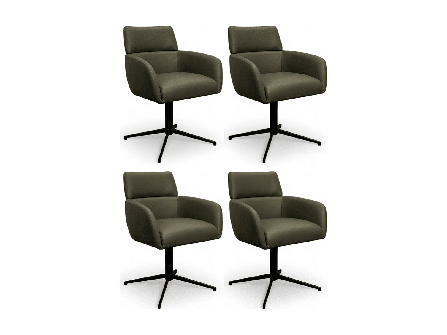 Esszimmerstühle 4er Set Marco - Leder & Metall - Olivgrün