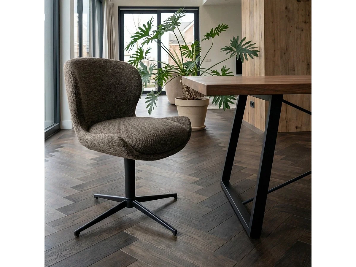 Esszimmerstühle 4er Set Nicklas - Stoff (Bouclé) & Metall - Dunkelbraun