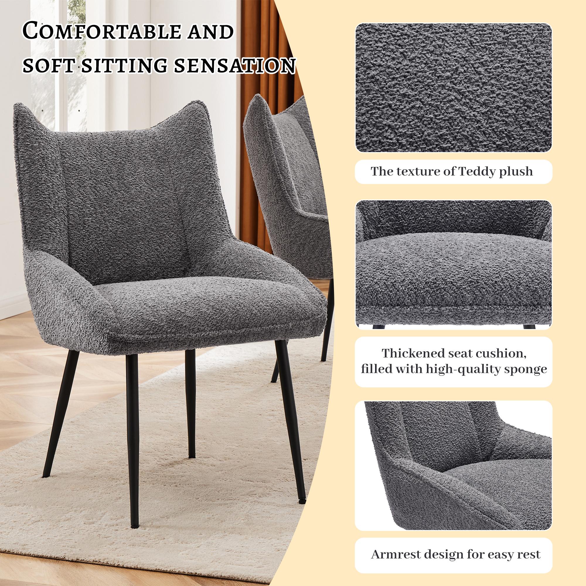 Samt Esszimmerstuhl Teddykissen dick bequem multifunktional grau 56x47x86cm 6er Set