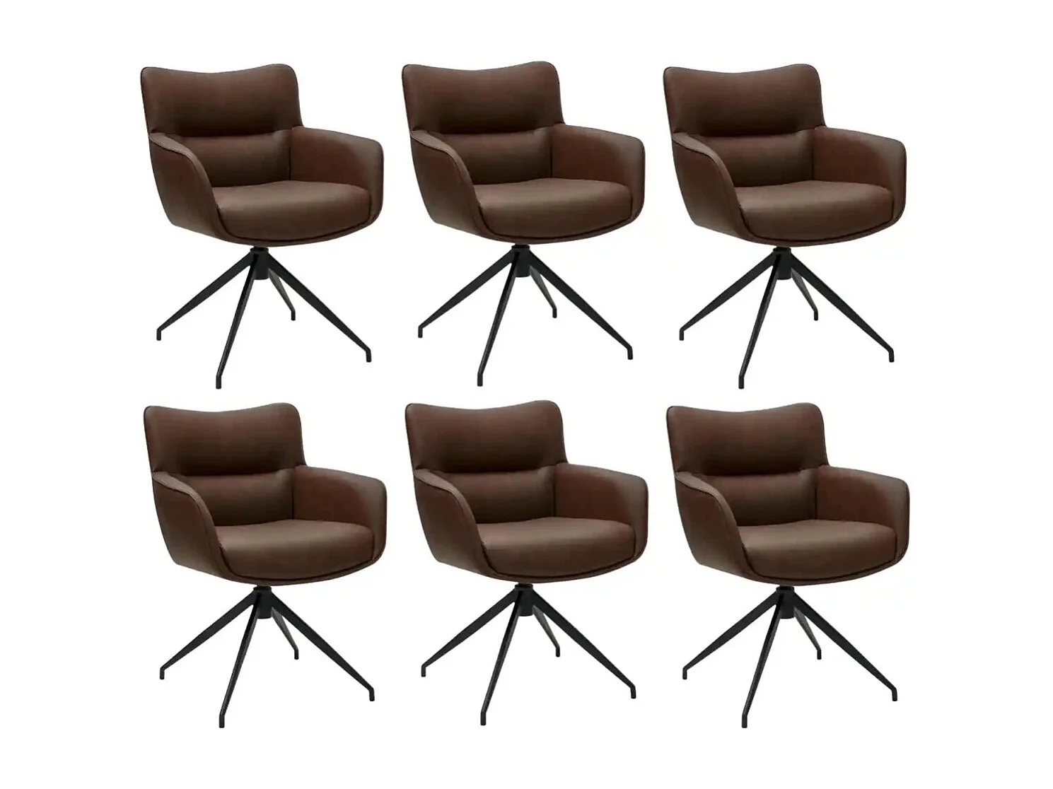 Esszimmerstühle 6er Set Jessica - Kunstleder & Metall - Cognacbraun