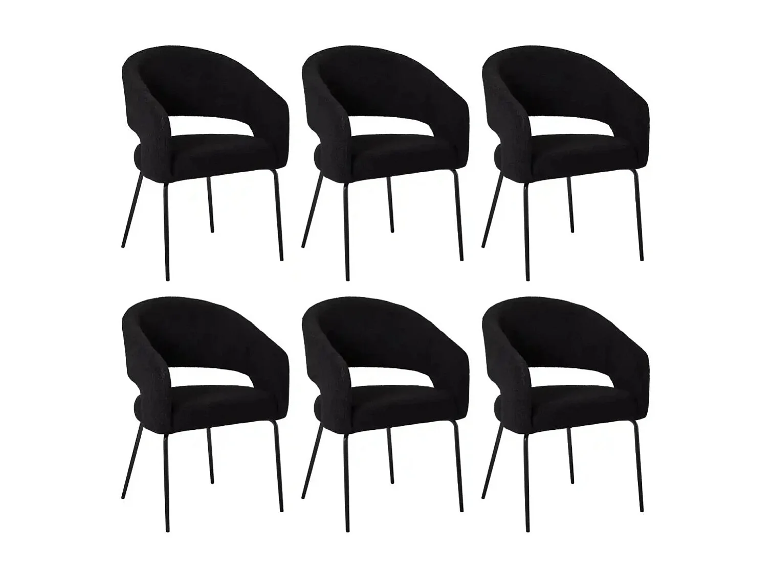 Esszimmerstühle 6er Set Natalie - Stoff (Bouclé) & Metall - Schwarz