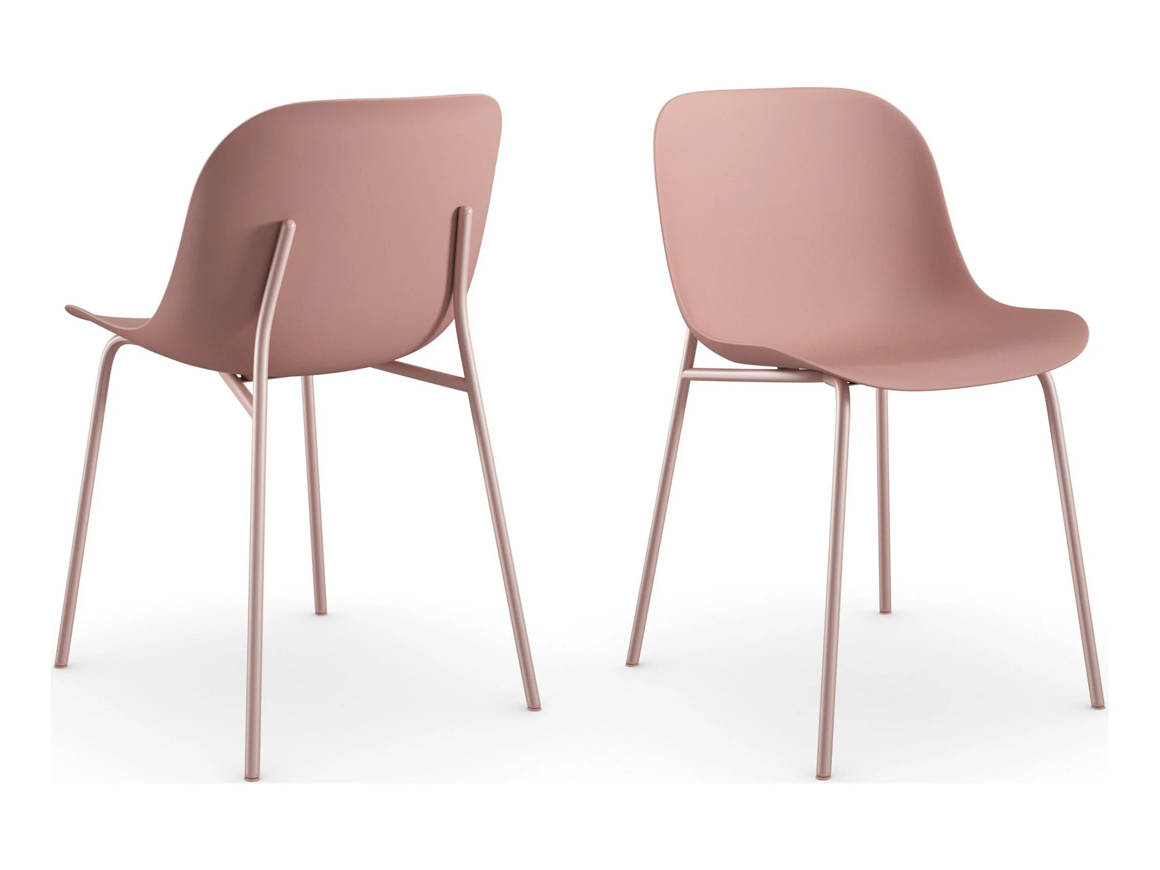 Esszimmerstühle im 2er-Set aus rosafarbenem Kunststoff mit Beinen aus rosafarbenem Metall