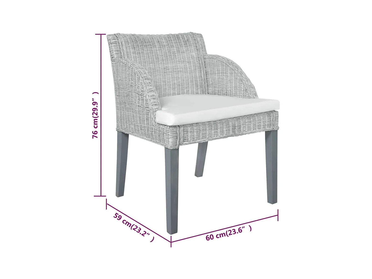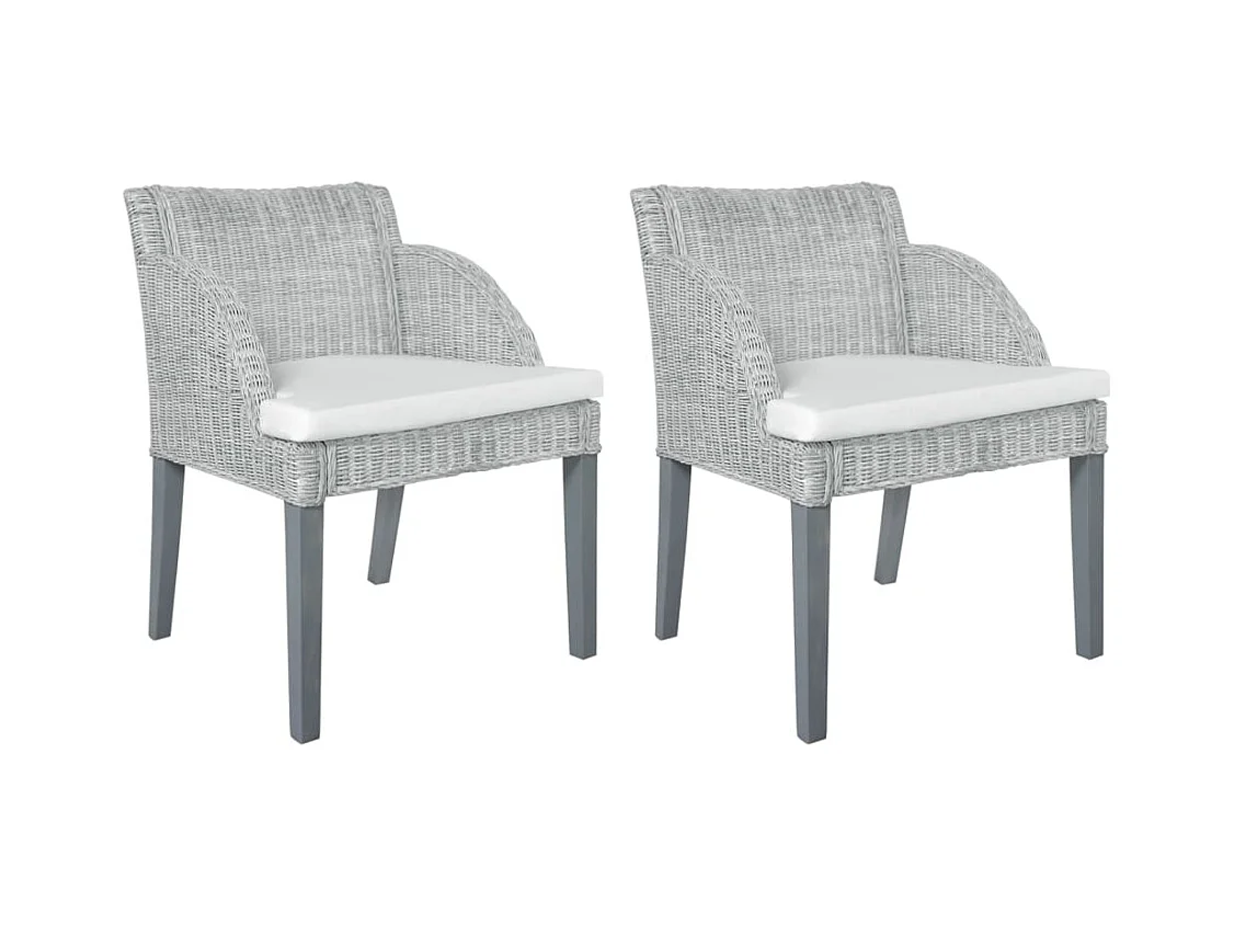 Esszimmerstühle mit Kissen 2er-Set graues Naturrattan