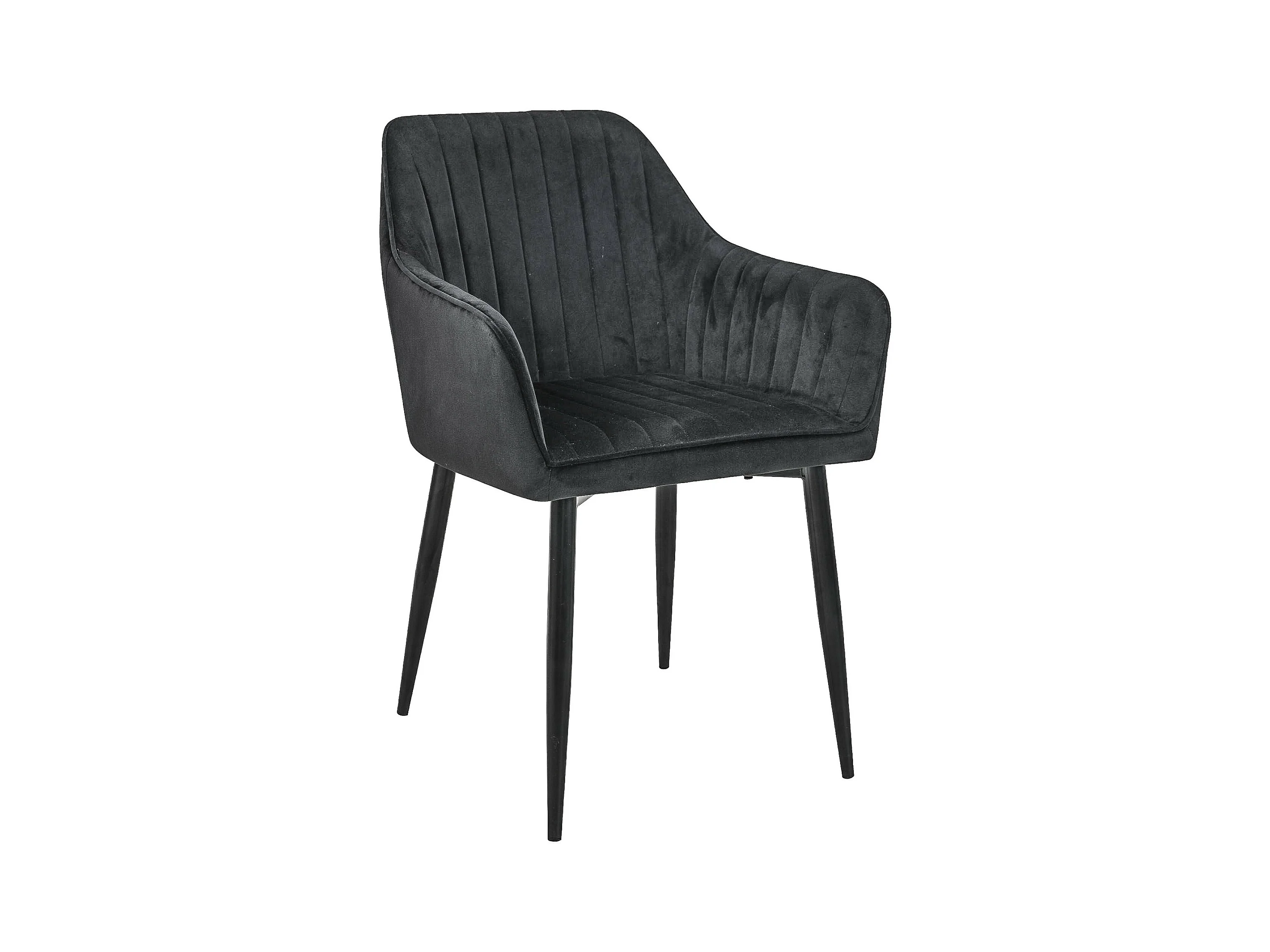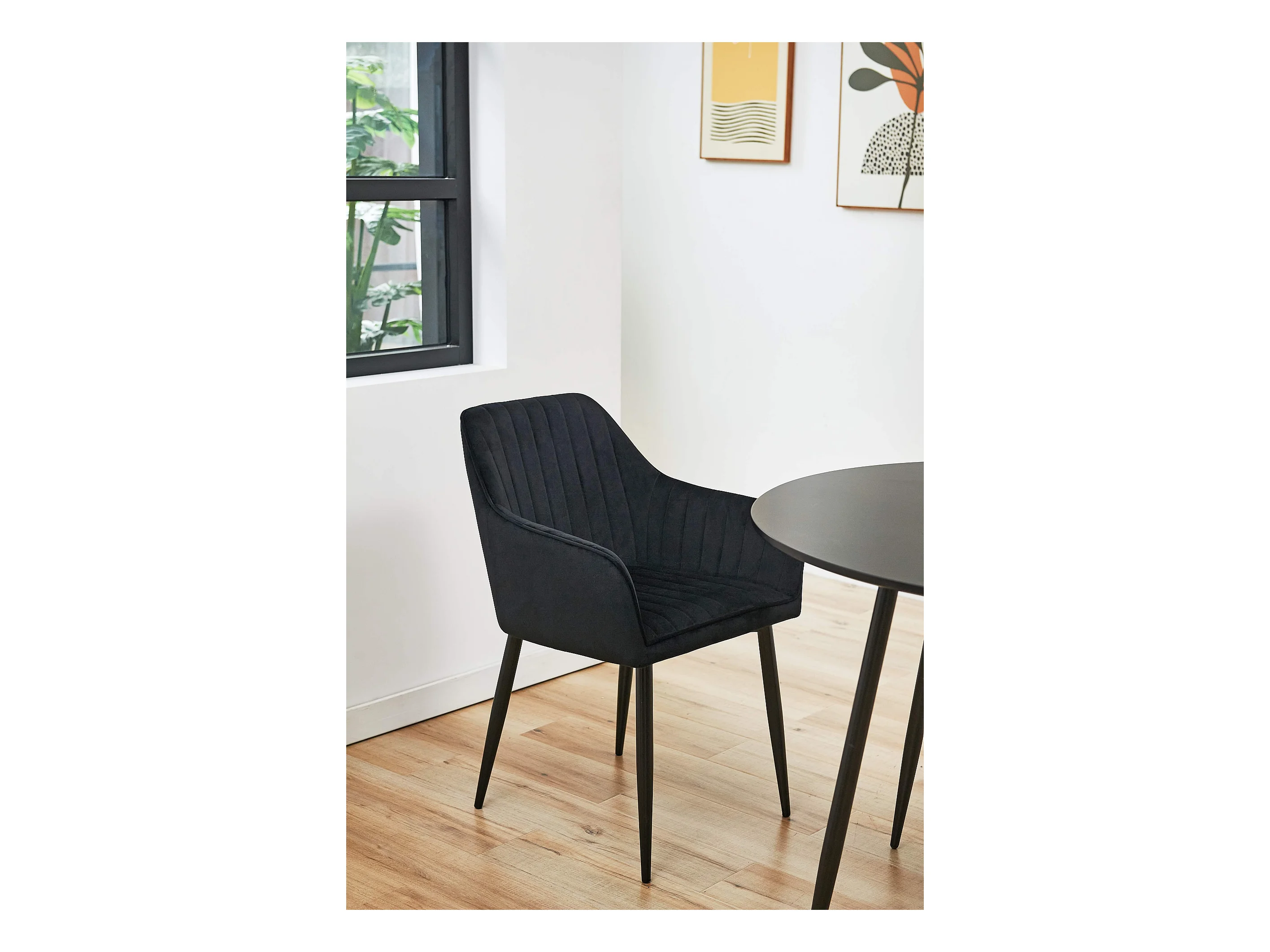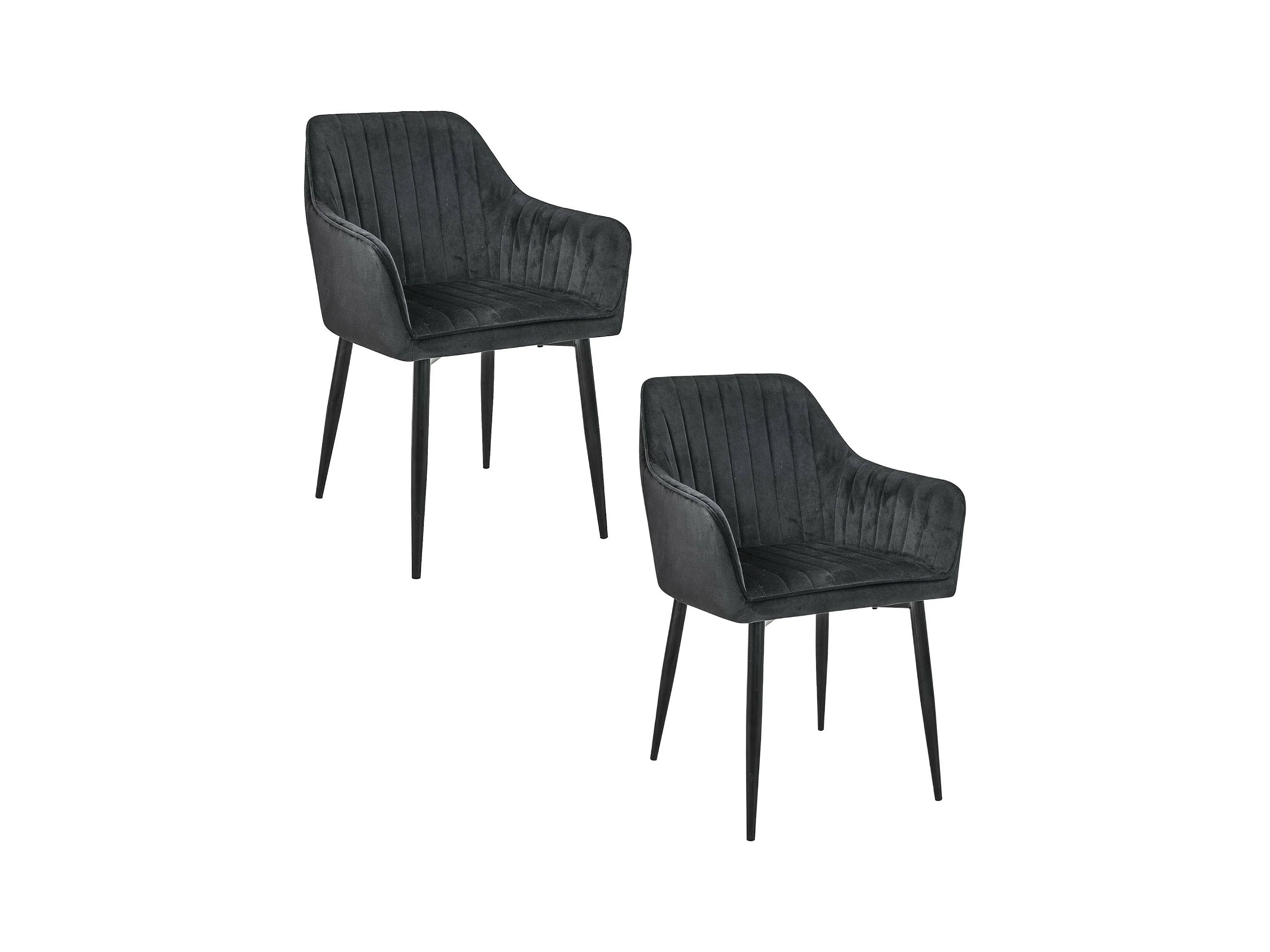 Esszimmerstühle mit Samt 2er Set AKORD SJ.040 Gepolsterter Gesteppter Stuhl aus Velours in Schwarz