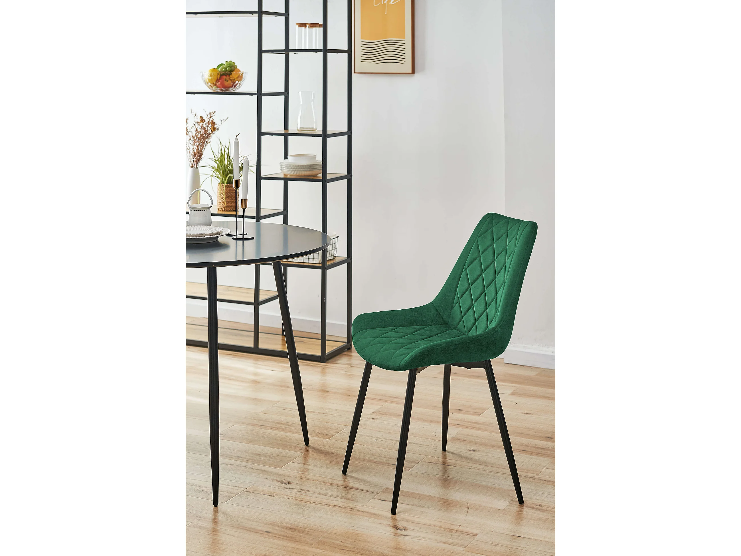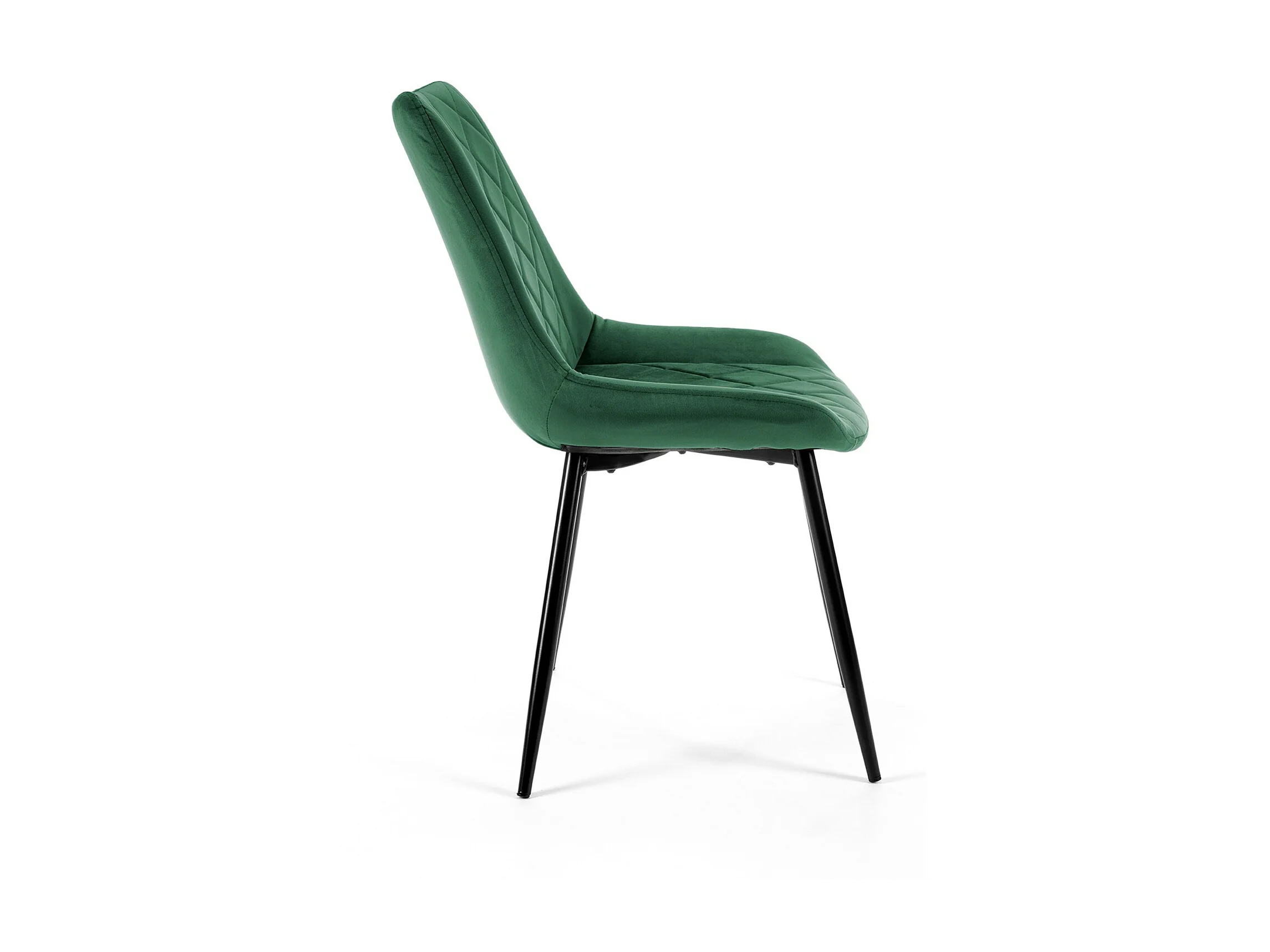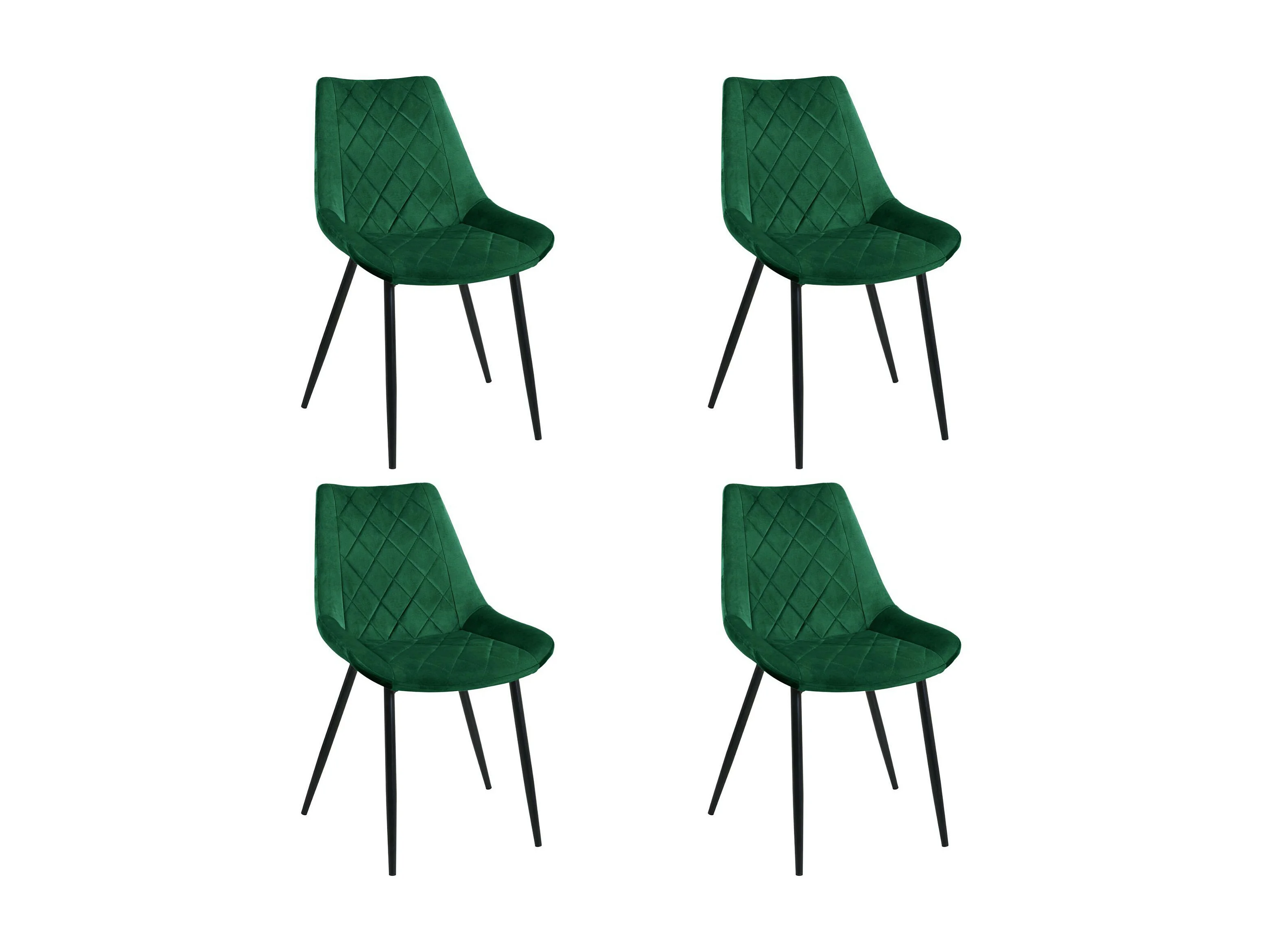 Esszimmerstühle mit Samt 4er Set AKORD SJ.0488 Gepolsterter Gesteppter Stuhl aus Velours in Flaschengrün