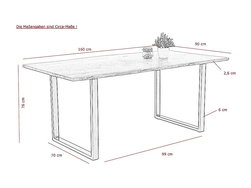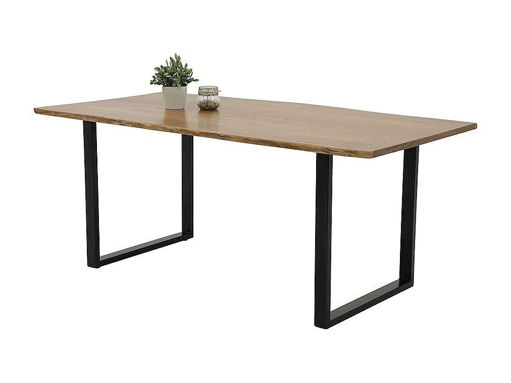 Esszimmertisch aus Akazie Massivholz und Metall Bügelgestell