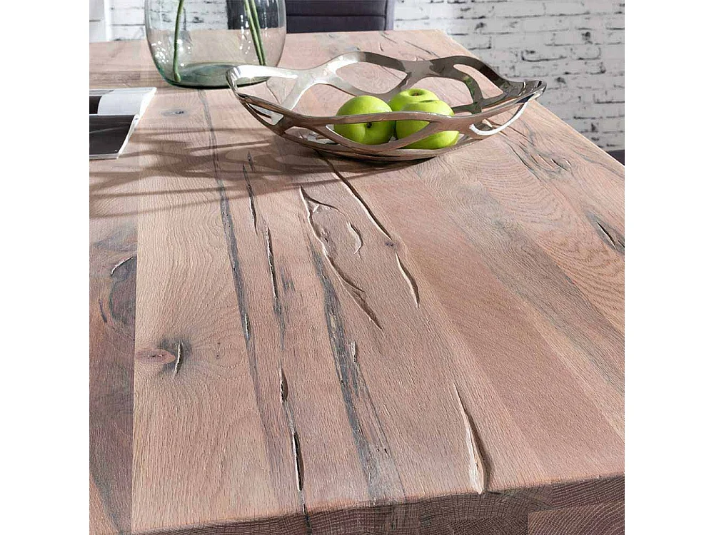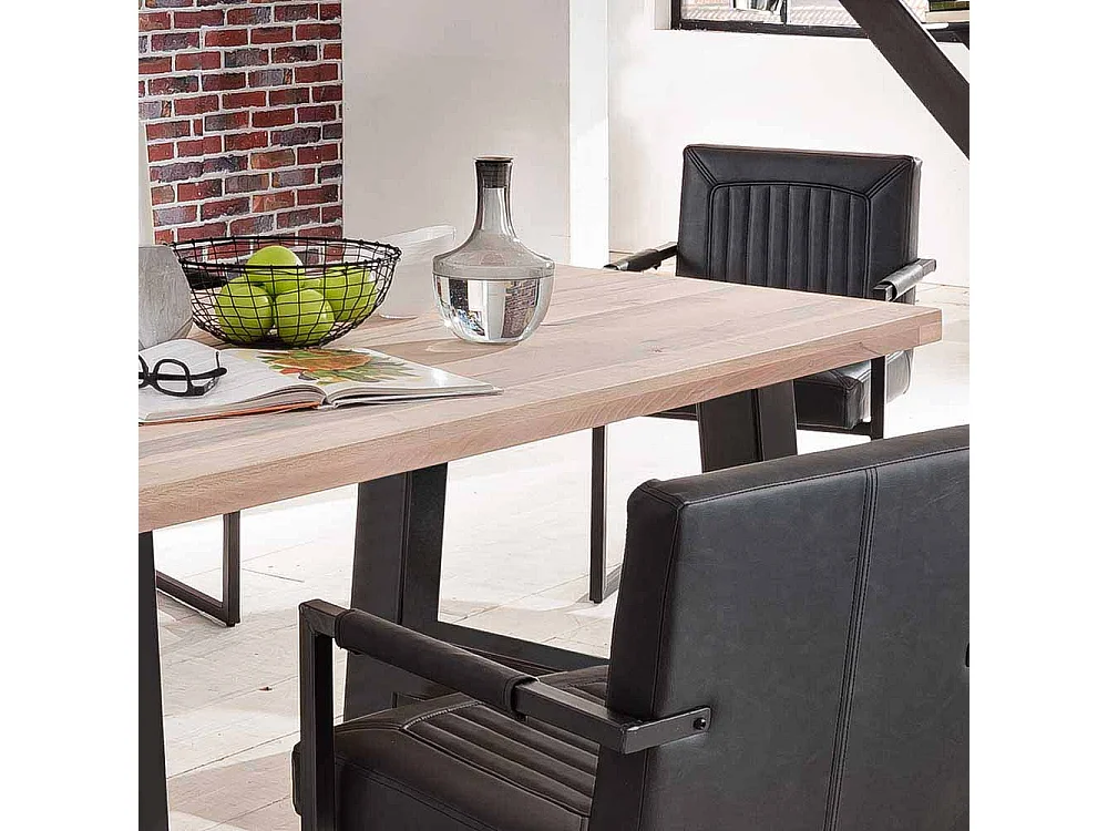 Esszimmertisch aus Eiche massiv gekälkt Schwarz Eisen