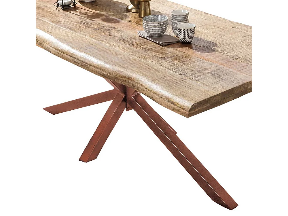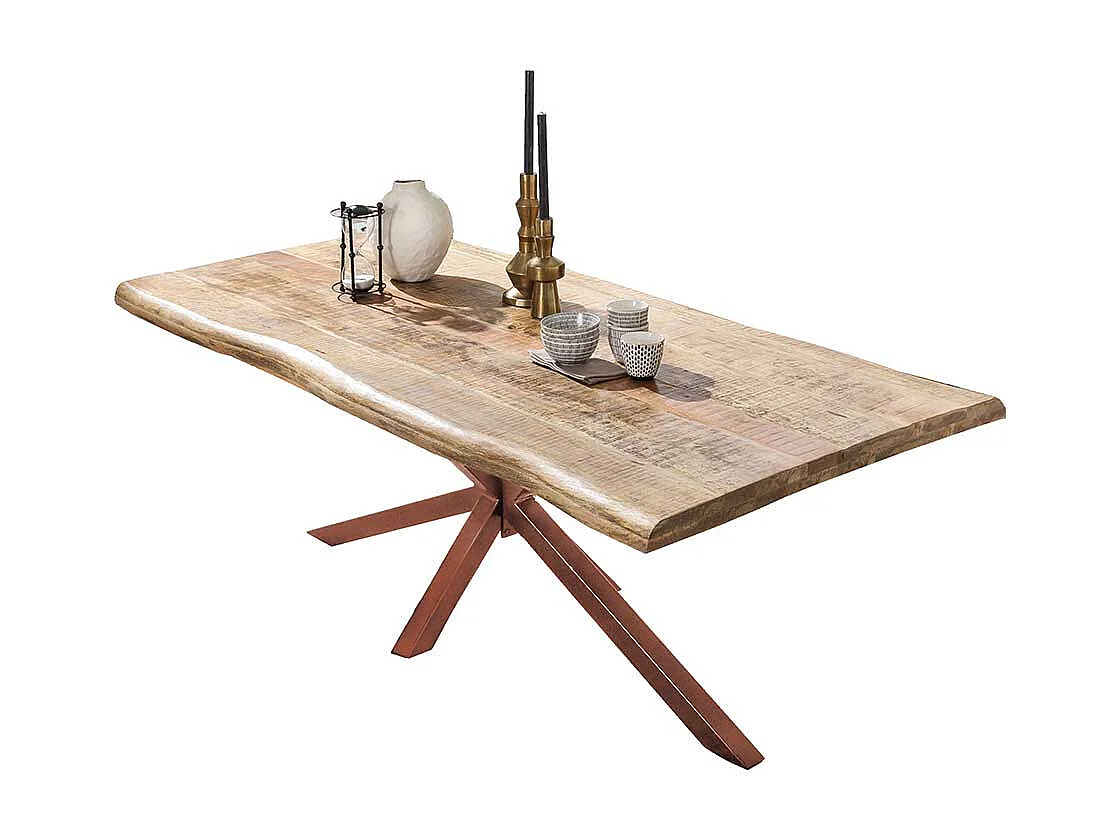 Esszimmertisch aus Mangobaum Massivholz und Eisen Baumkante