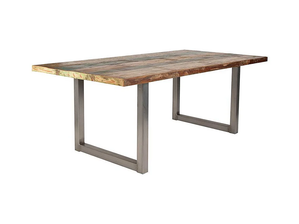 Esszimmertisch aus Recyclingholz Bunt Braun Stahl