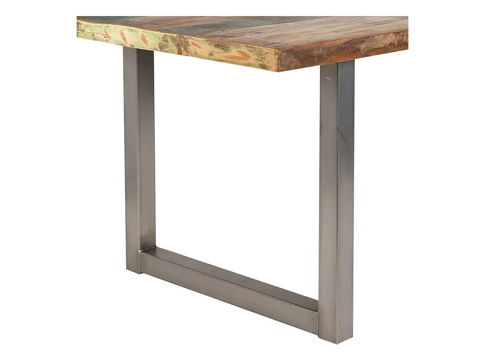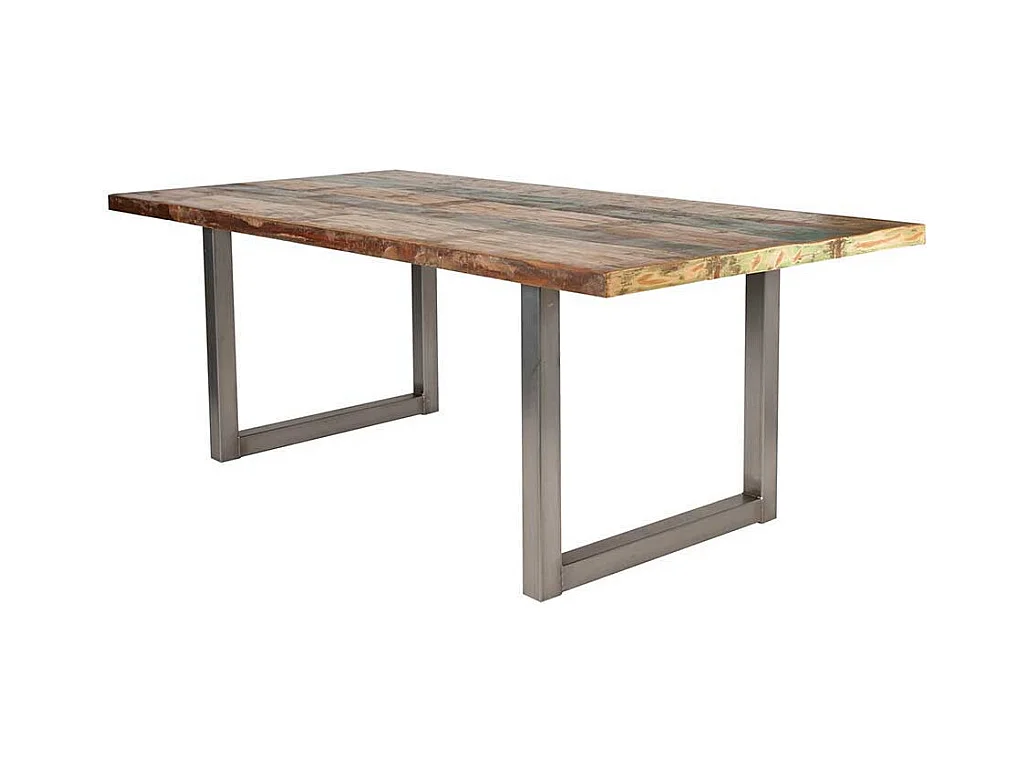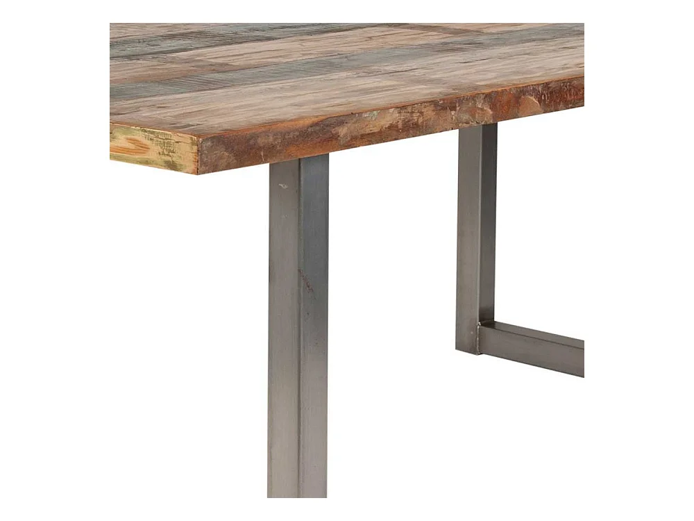 Esszimmertisch aus Recyclingholz Bunt Braun Stahl
