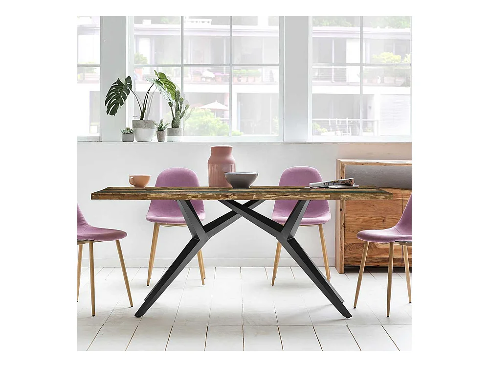 Esszimmertisch aus Recyclingholz Bunt und Antikschwarz