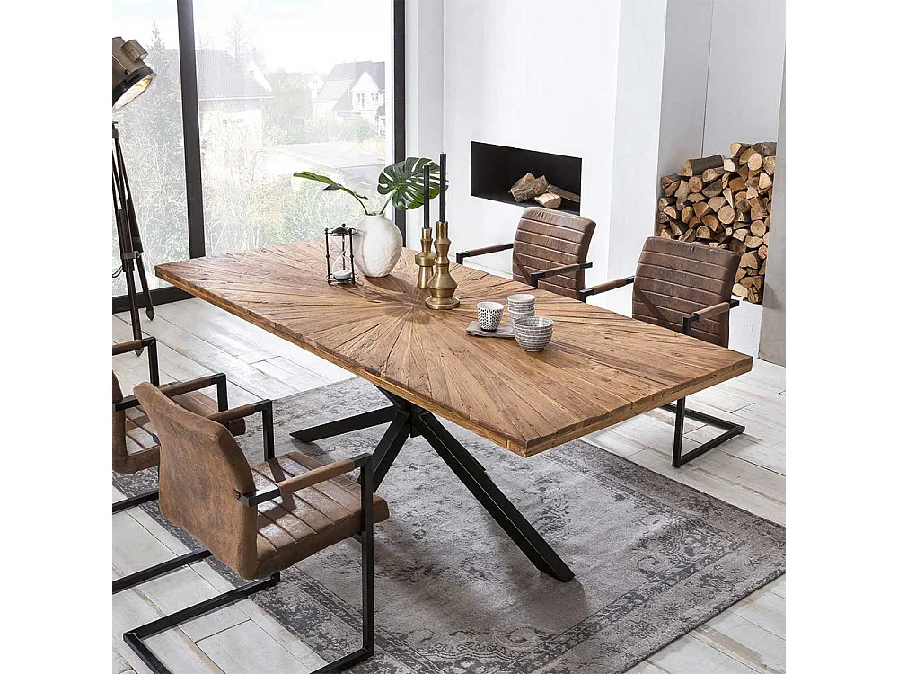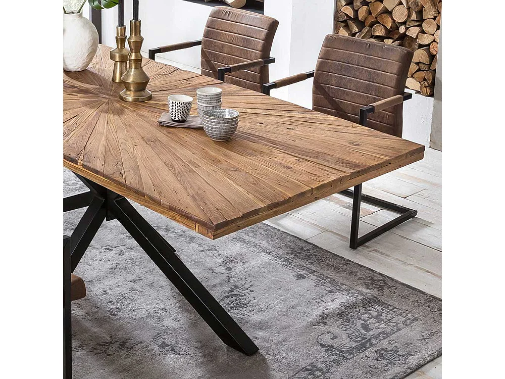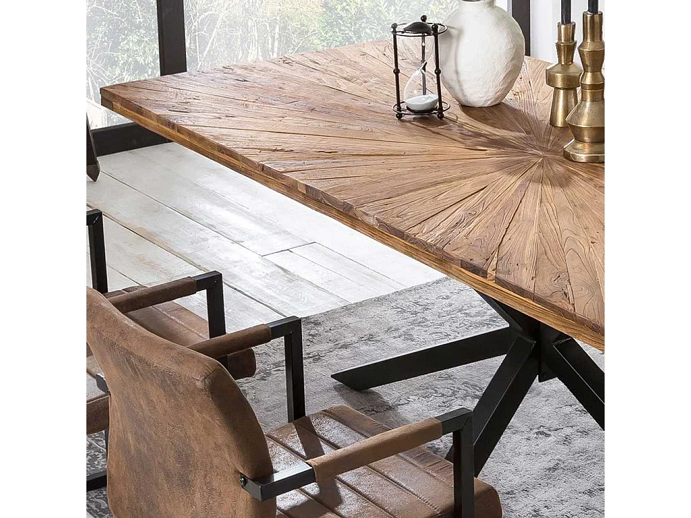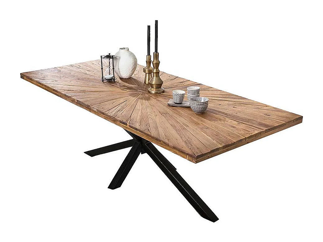 Esszimmertisch aus Teak Recyclingholz Spider Gestell in Schwarz