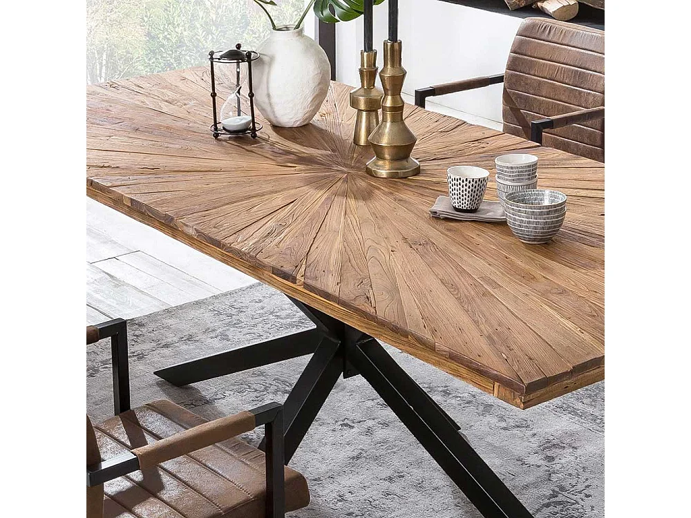 Esszimmertisch aus Teak Recyclingholz Spider Gestell in Schwarz
