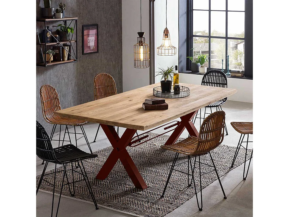 Esszimmertisch aus Wildeiche Massivholz mit Baumkante Metallgestell