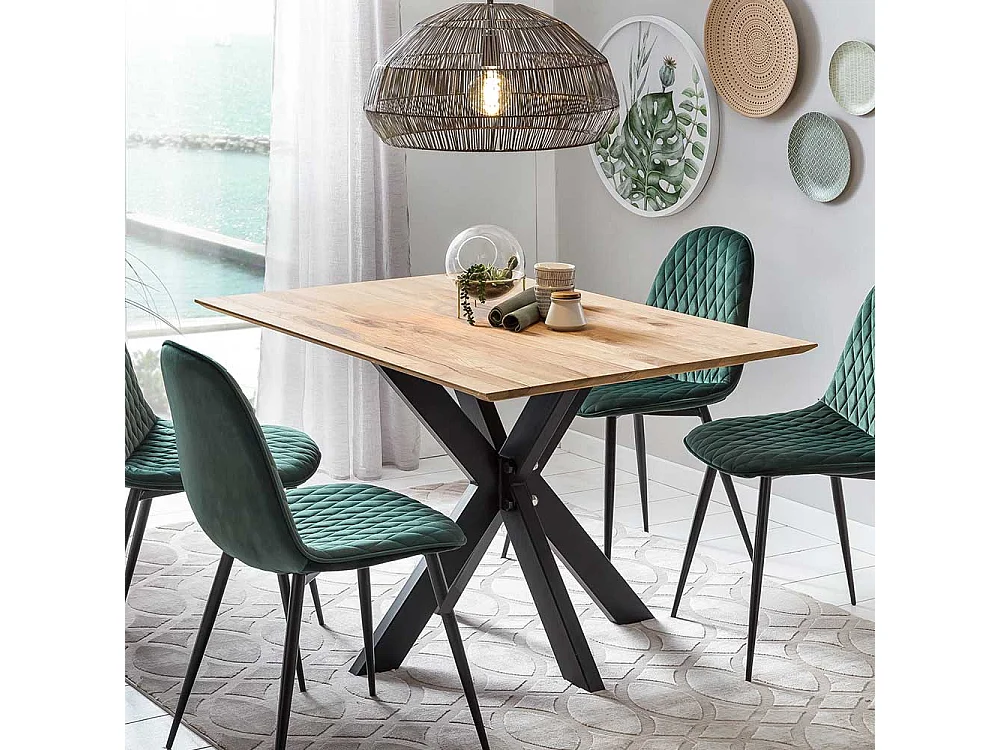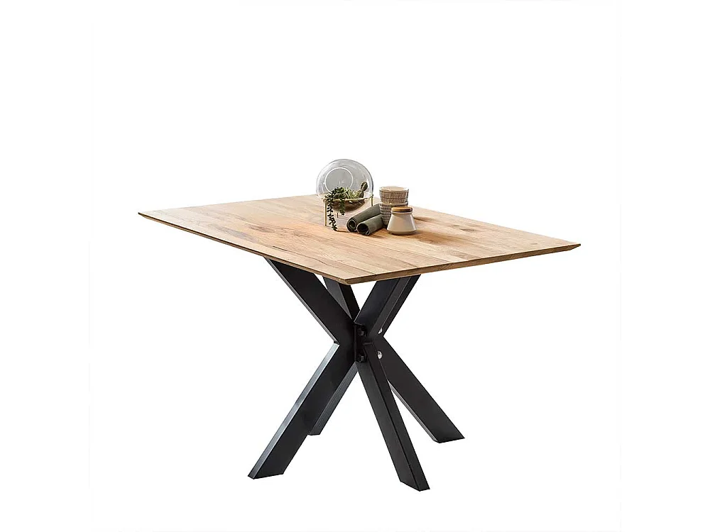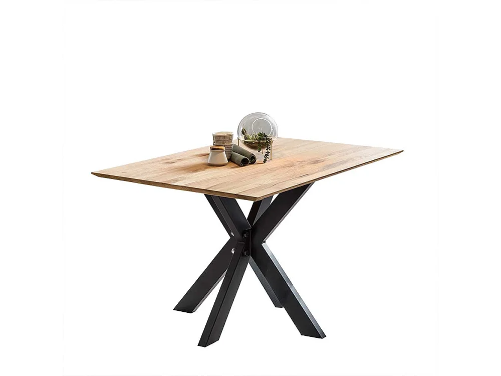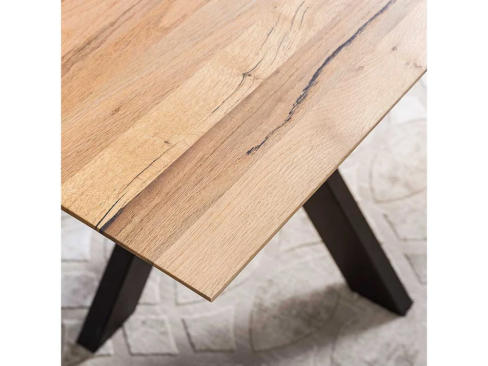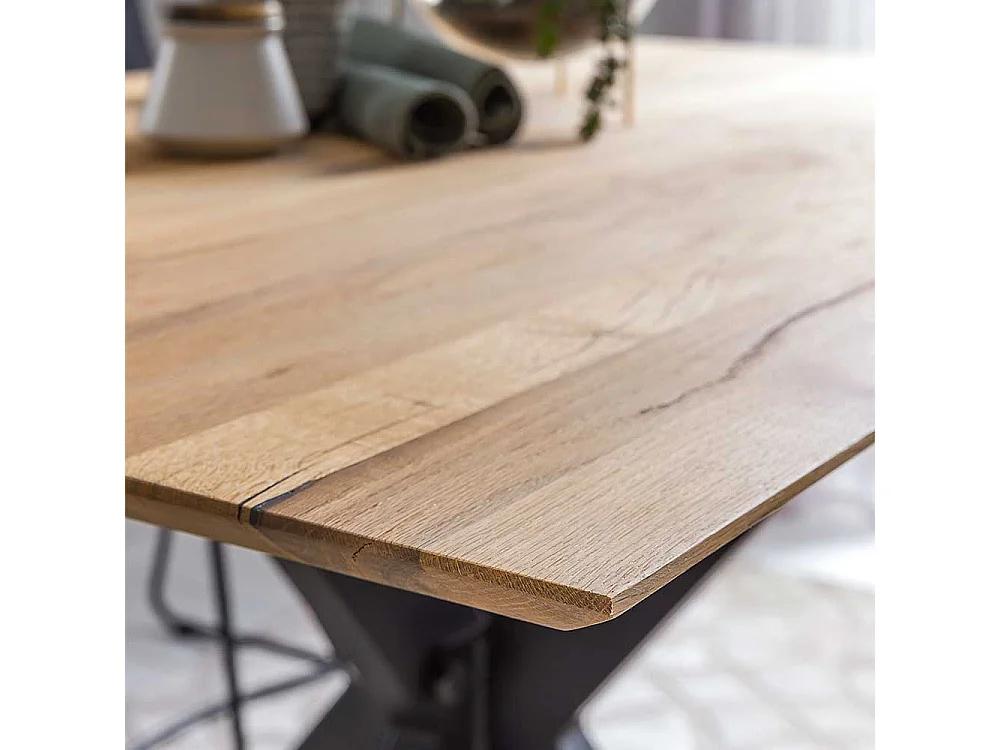 Esszimmertisch aus Wildeiche Massivholz Spider Gestell aus Metall