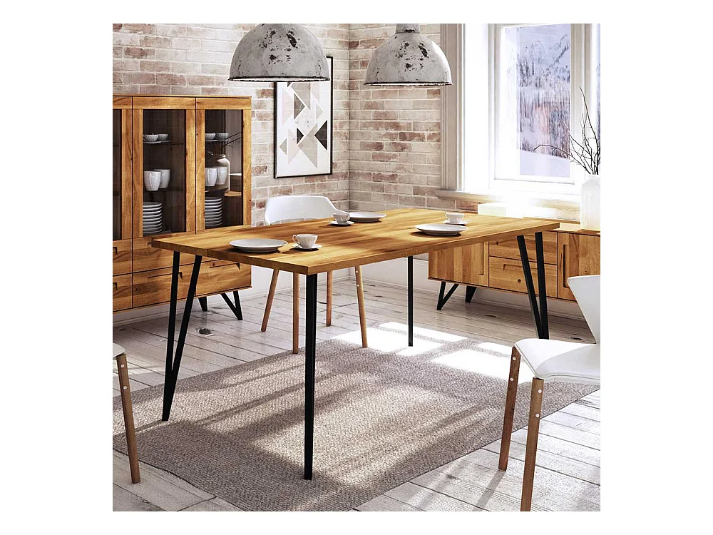 Esszimmertisch aus Wildeiche Massivholz und Stahl 4-Fußgestell