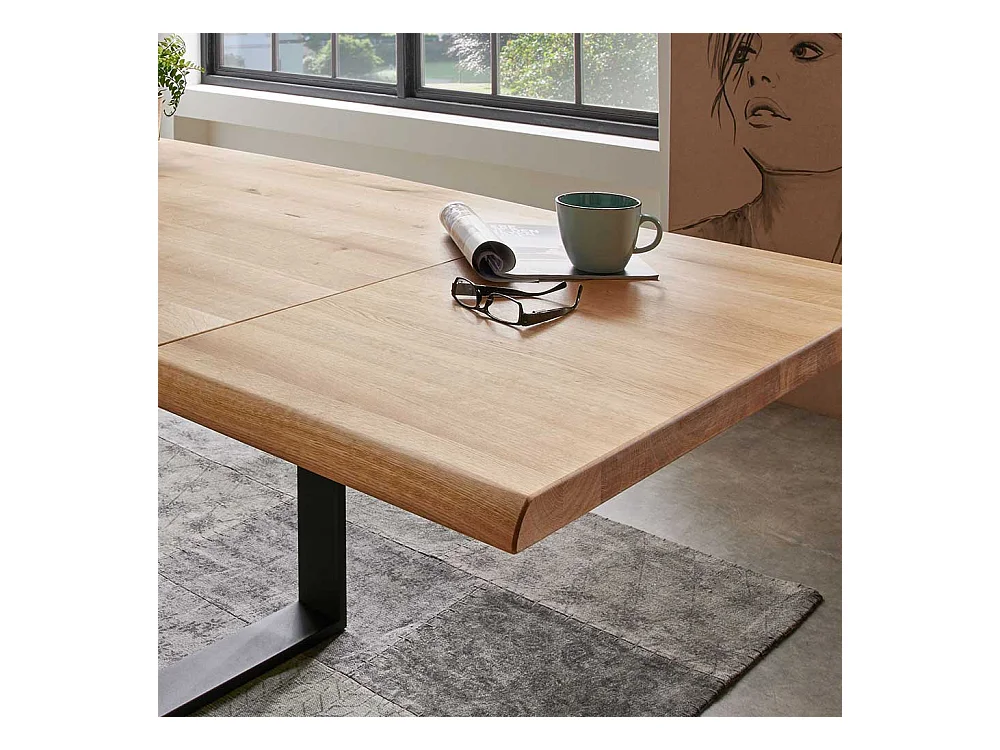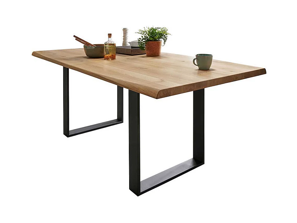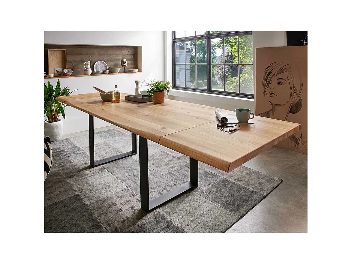 Esszimmertisch aus Wildeiche Massivholz und Stahl Industry und Loft Stil