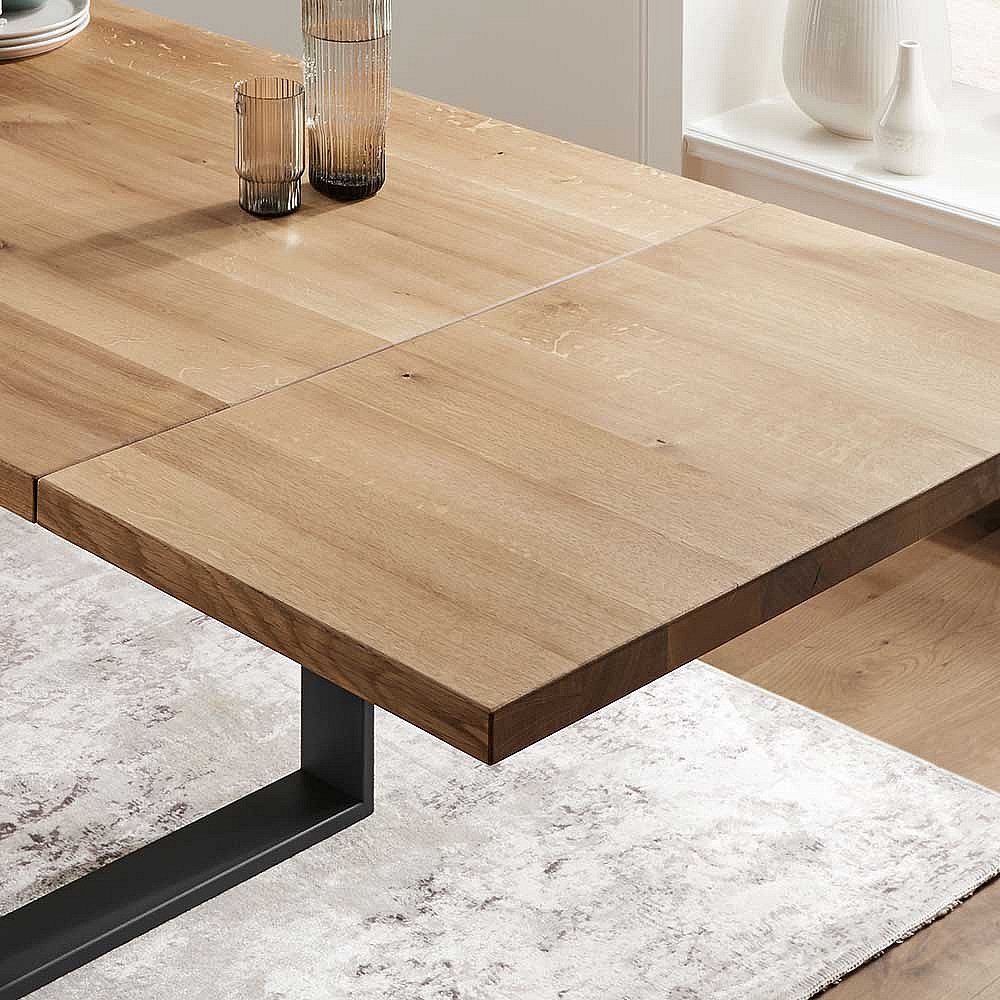 Esszimmertisch aus Wildeiche Massivholz und Stahl Loft Design