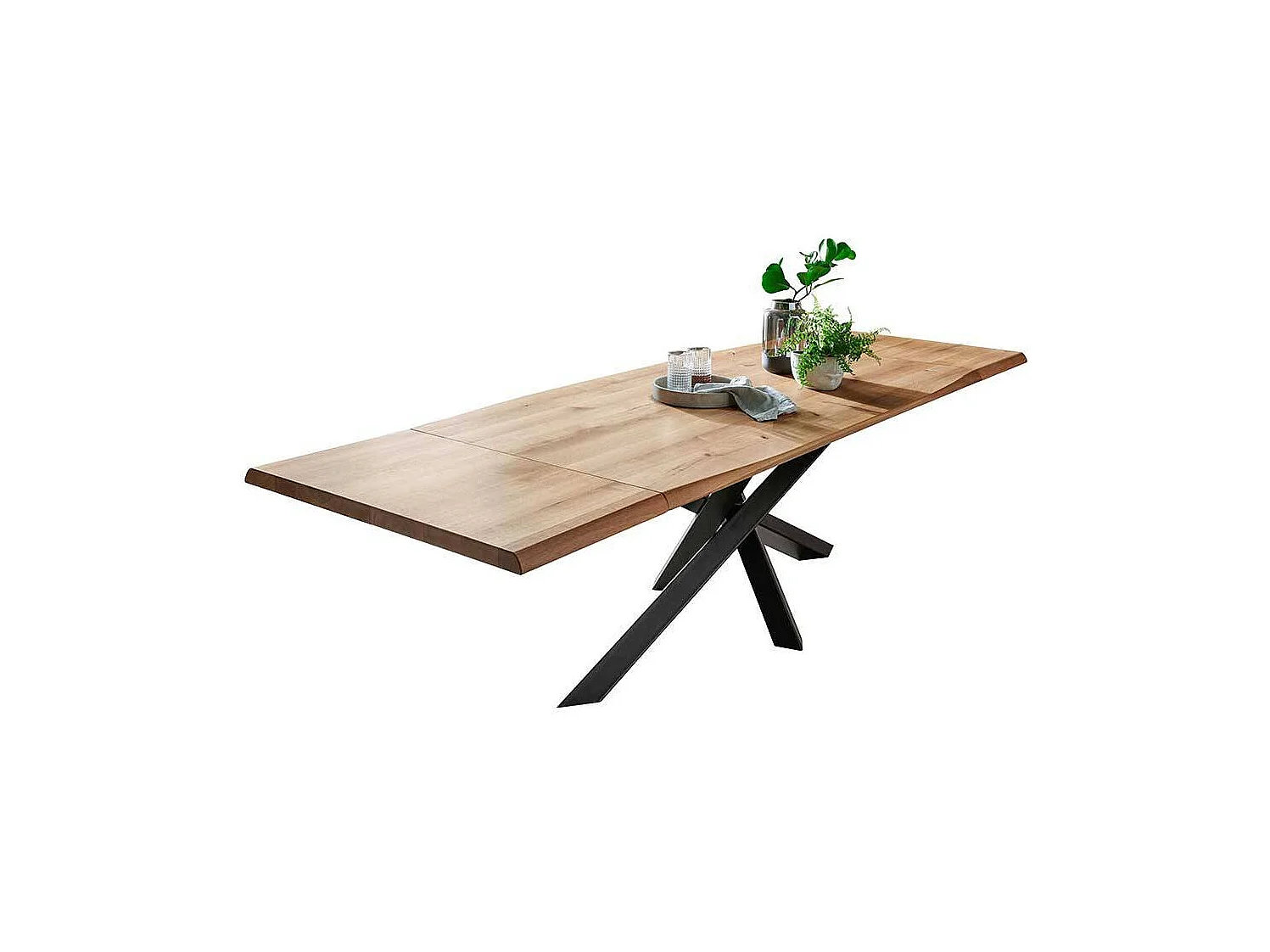 Esszimmertisch aus Wildeiche Massivholz und Stahl Spider Gestell