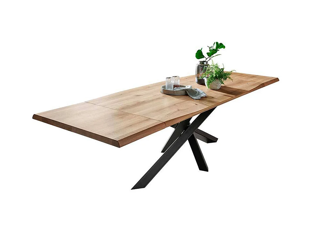 Esszimmertisch aus Wildeiche Massivholz und Stahl Spider Gestell