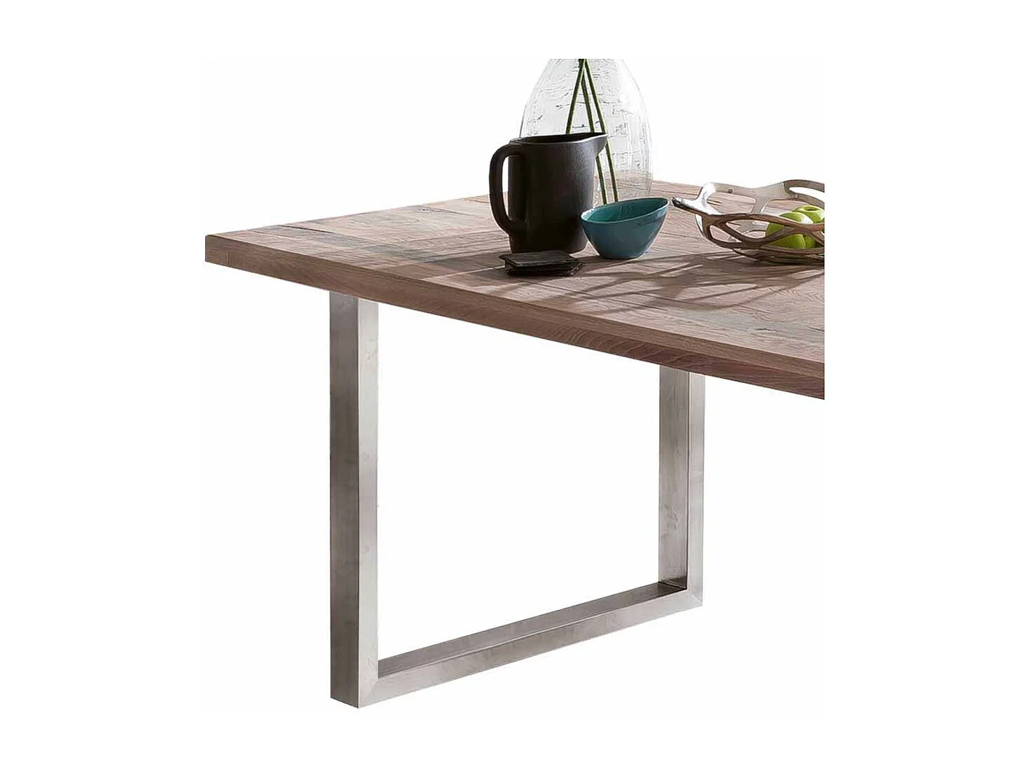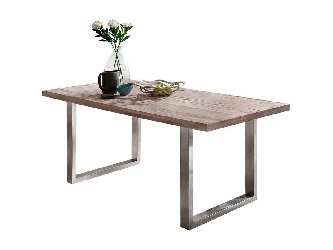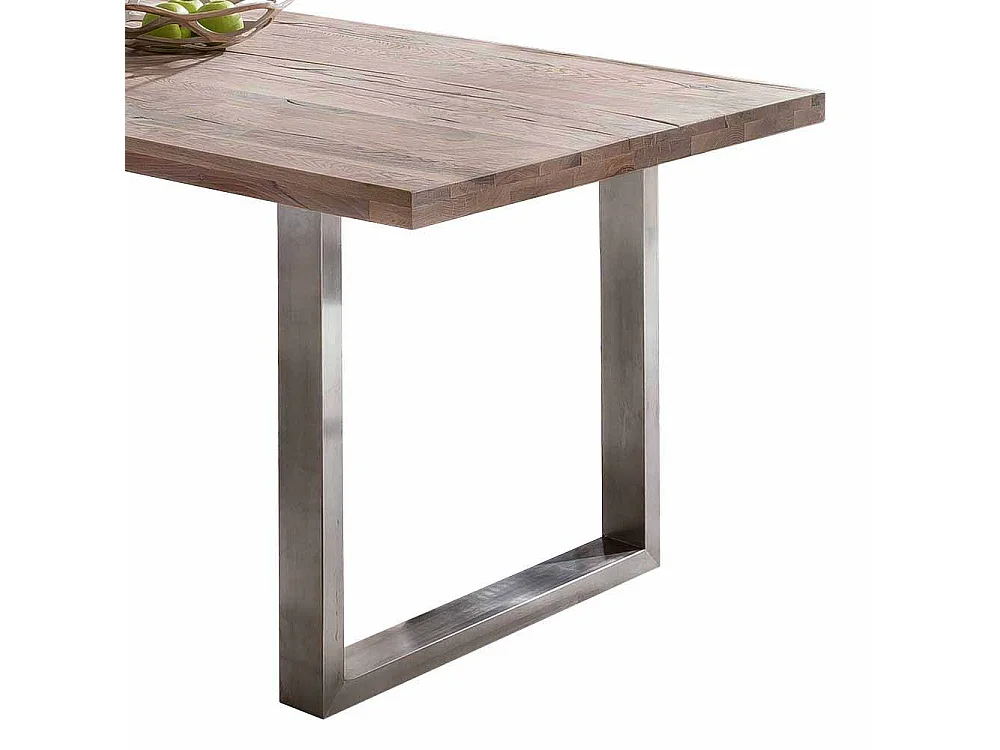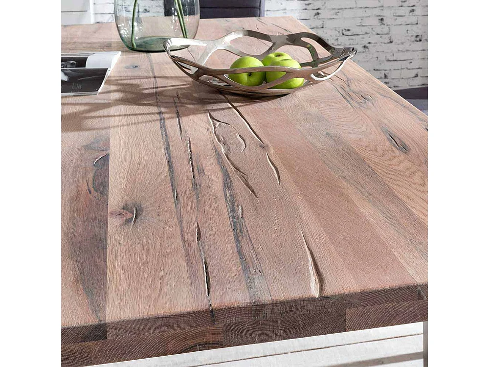 Esszimmertisch im Industry Design Eiche massiv gekälkt Edelstahl