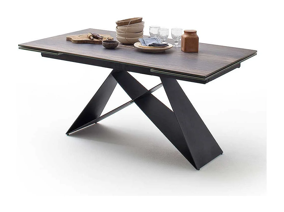 Esszimmertisch in Eiche dunkel und Schwarz Kopfauszug