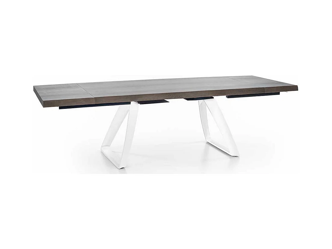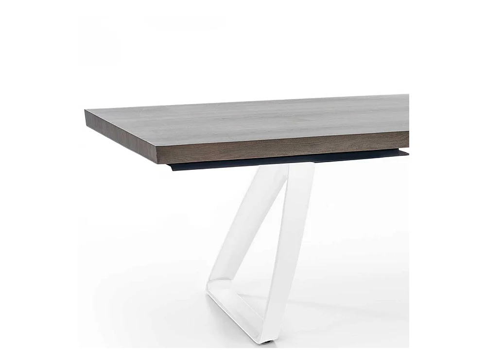 Esszimmertisch in Esche Grey Wash furniert Bügelgestell in Weiß