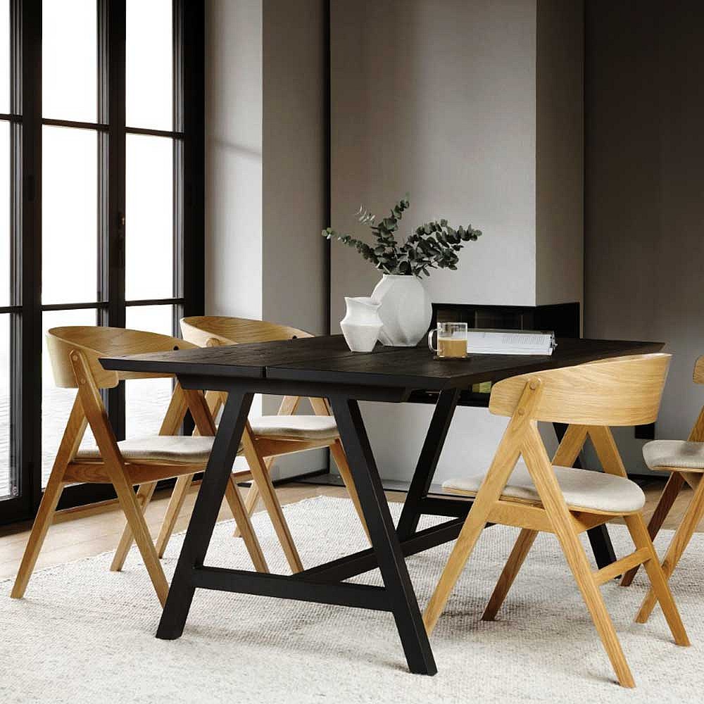 Esszimmertisch in Schwarz lackiert Eiche Massivholz und Metall