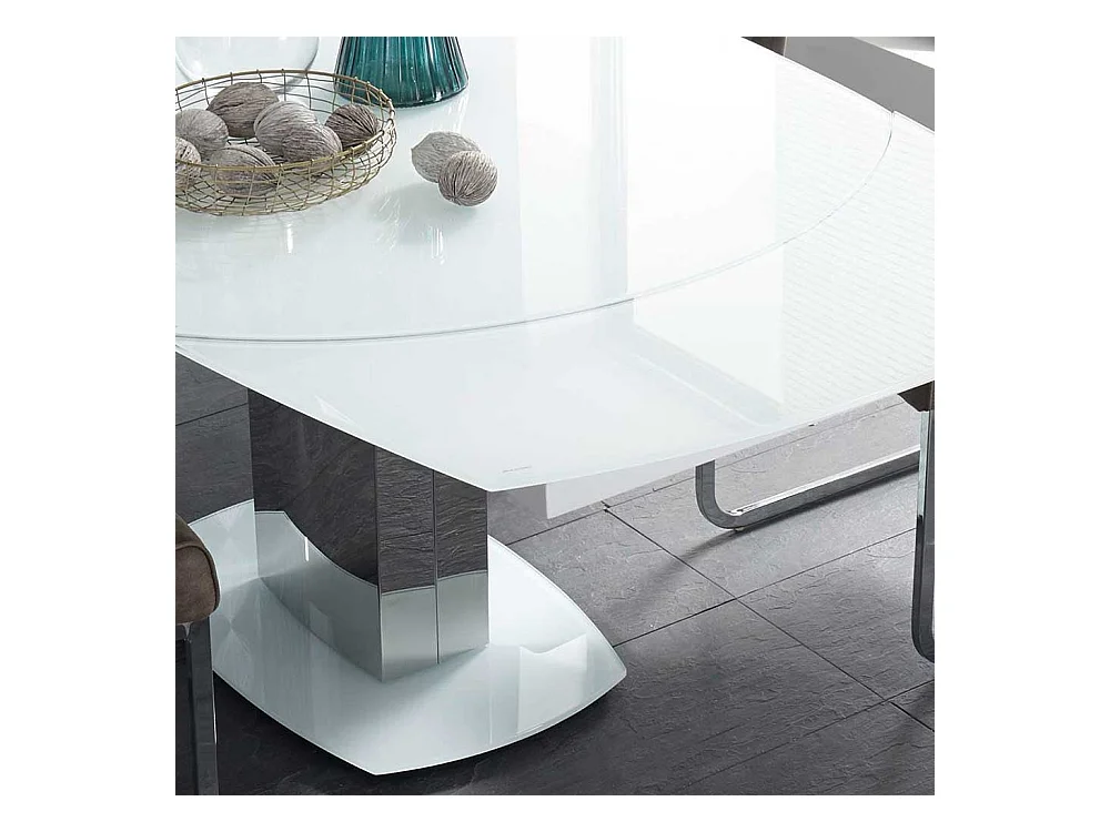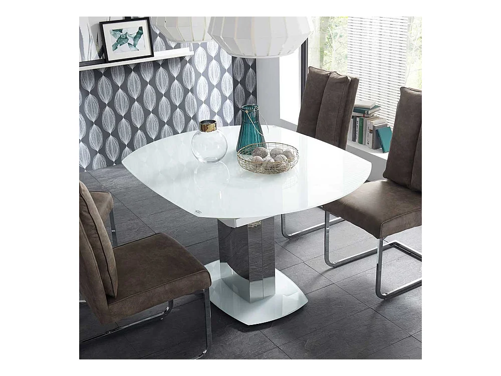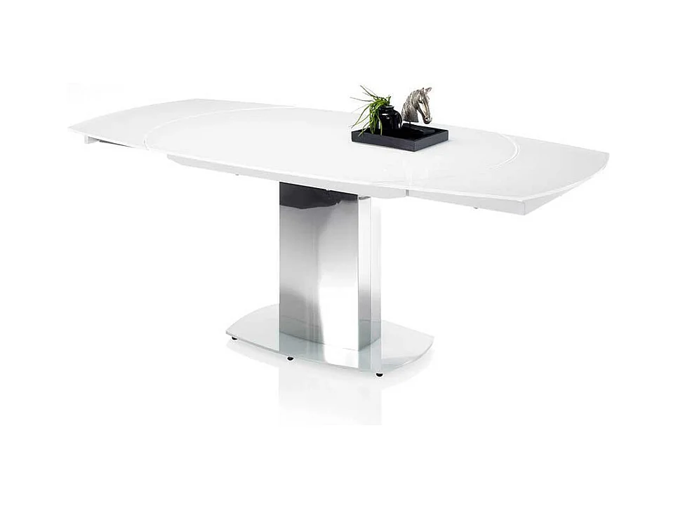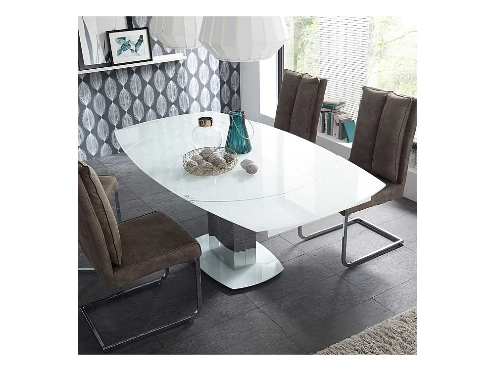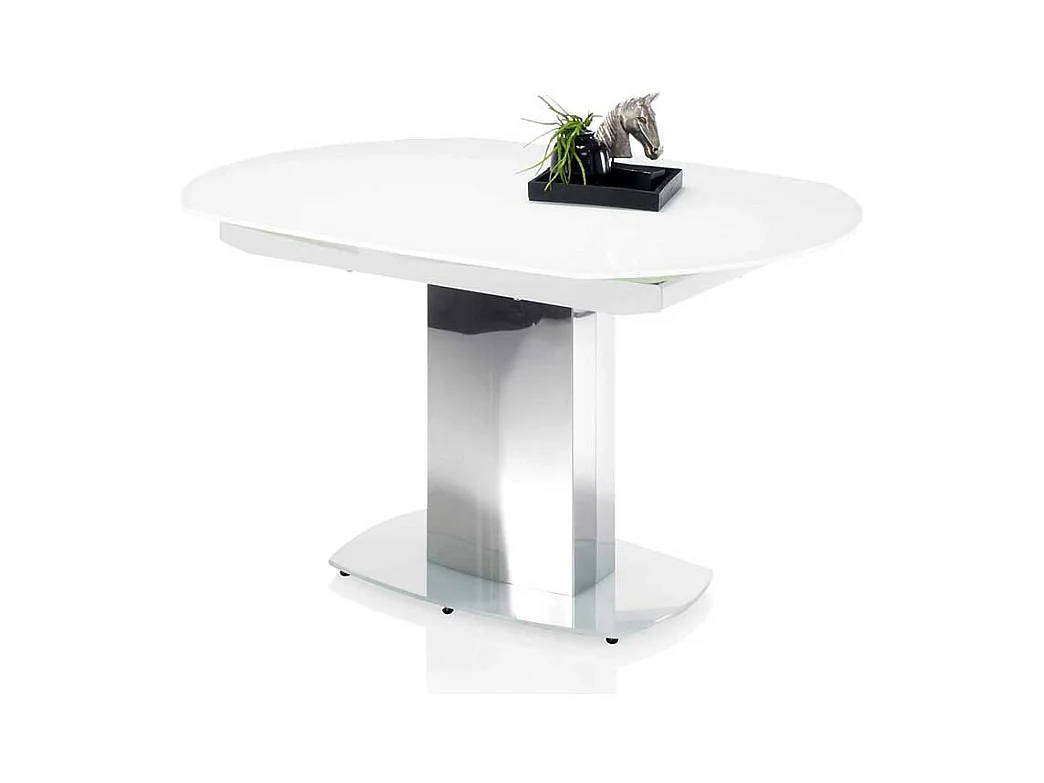 Esszimmertisch in Weiß Glasplatte Edelstahl