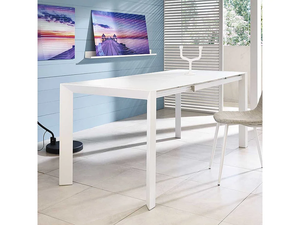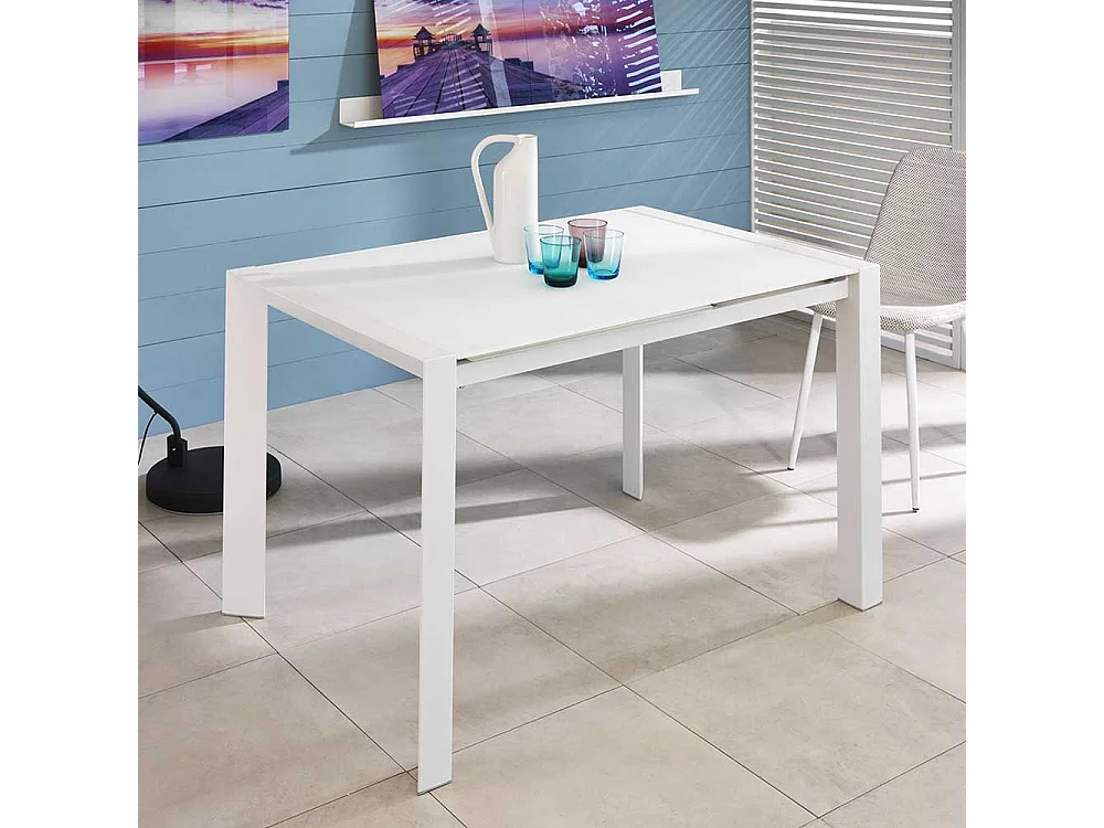 Esszimmertisch in Weiß Sicherheitsglas verlängerbar