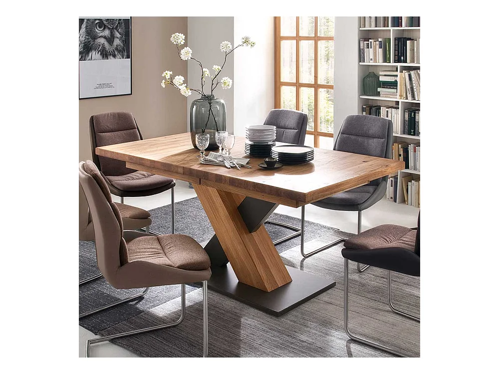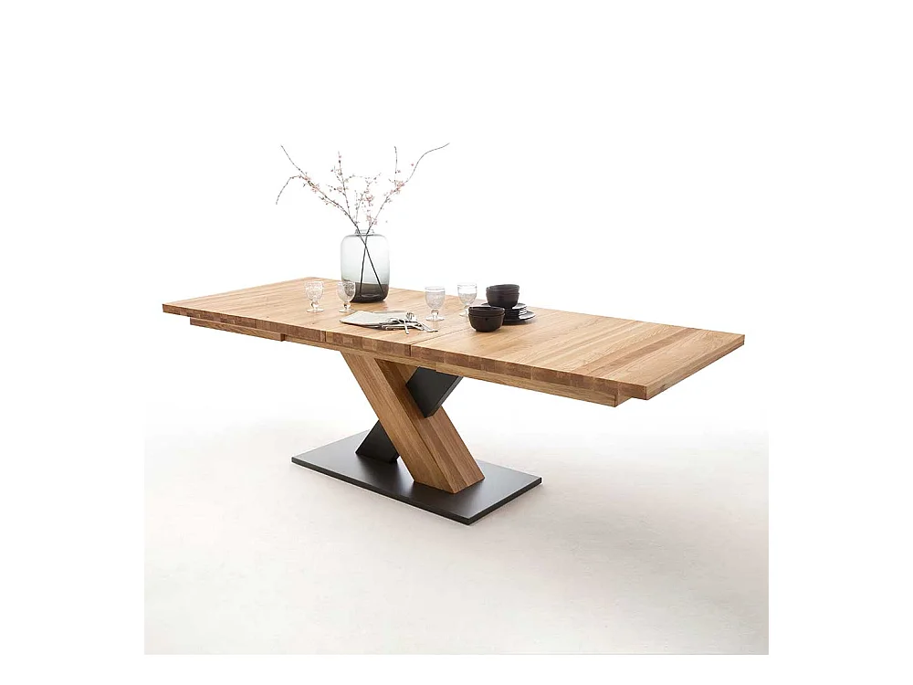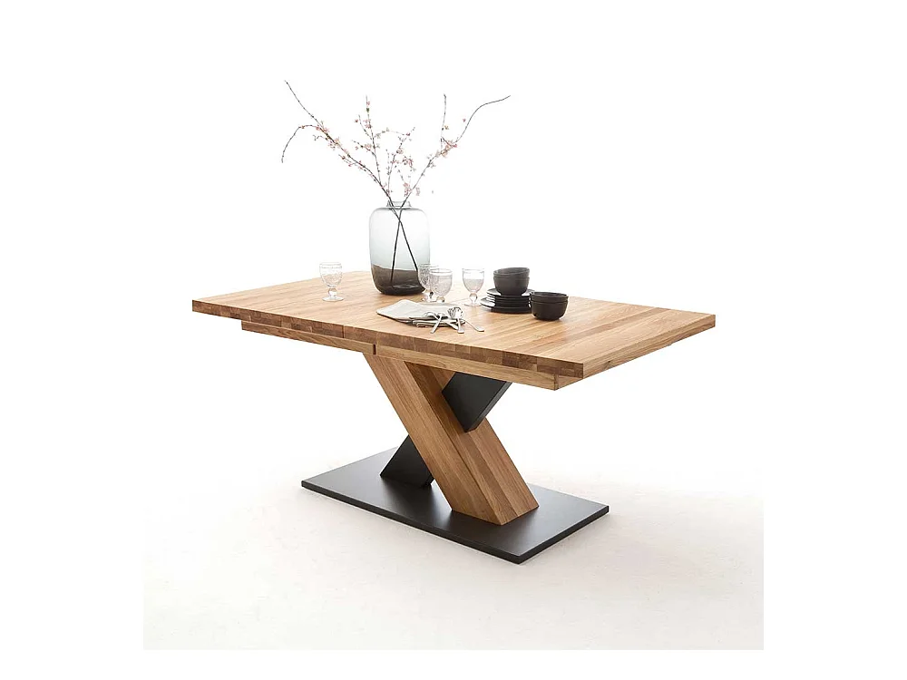 Esszimmertisch in Wildeichefarben und Schwarz Mittelauszug