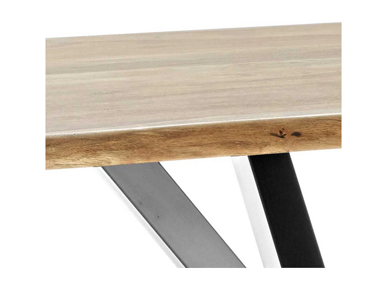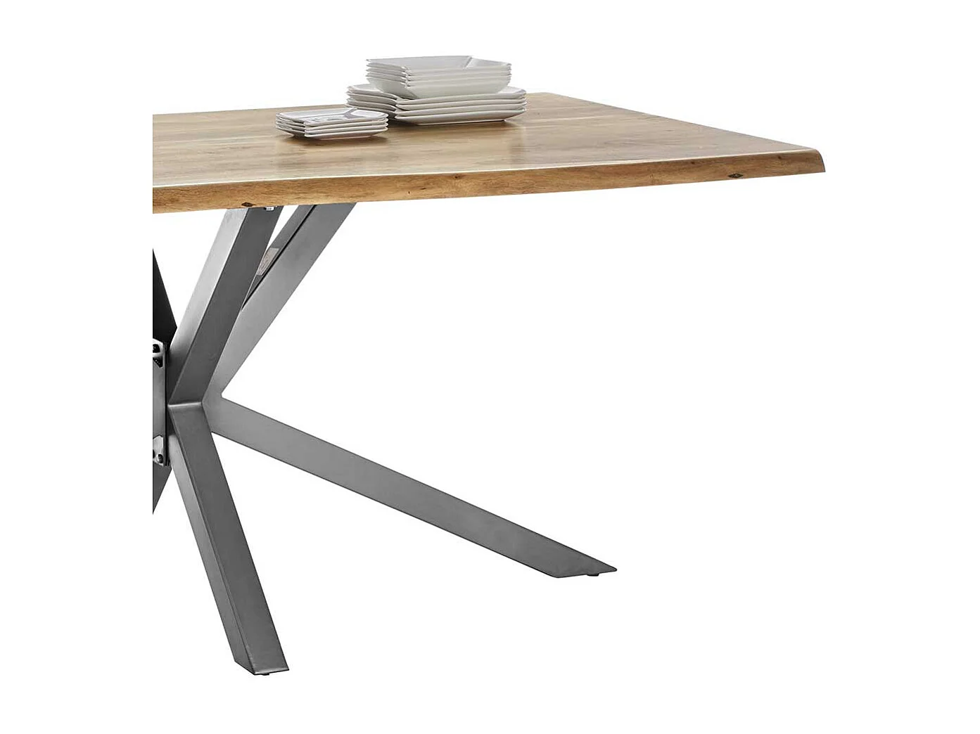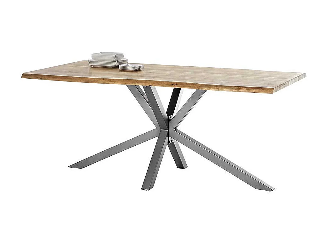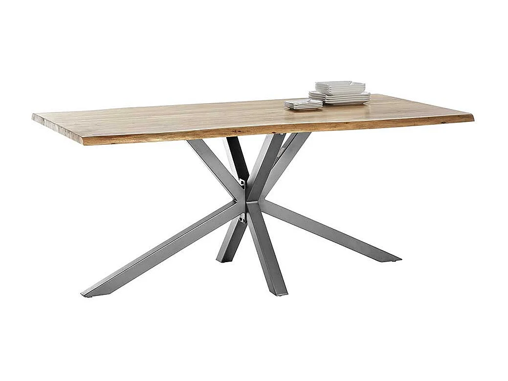 Esszimmertisch mit Akazie Massivholzplatte Spider Gestell in Altsilberfarben