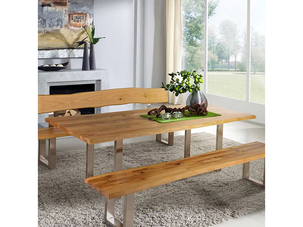Esszimmertisch mit Baumkante Wildeiche massiv Metall